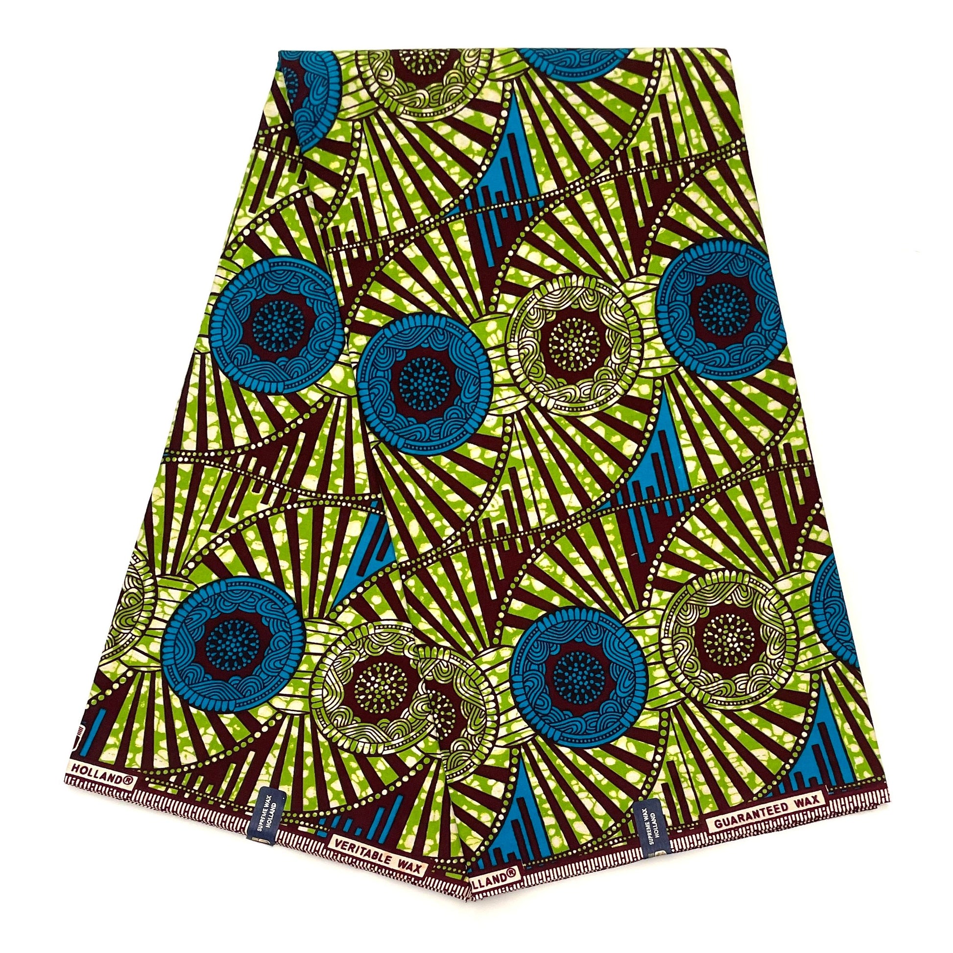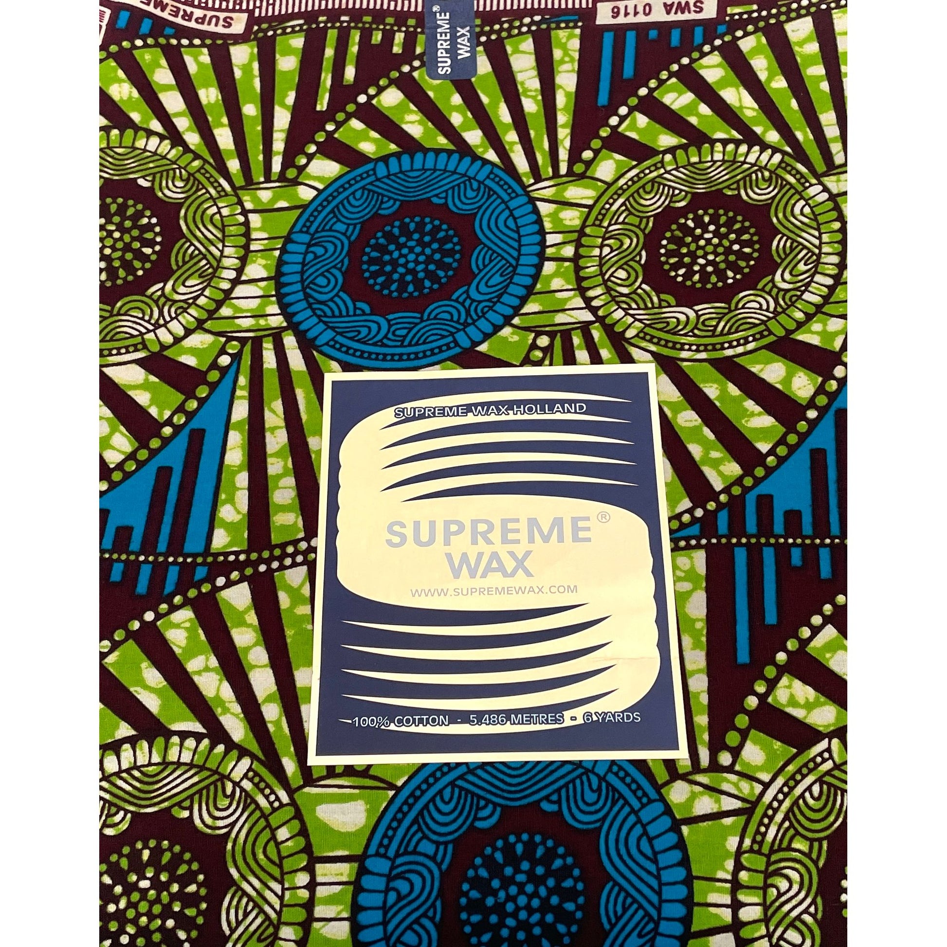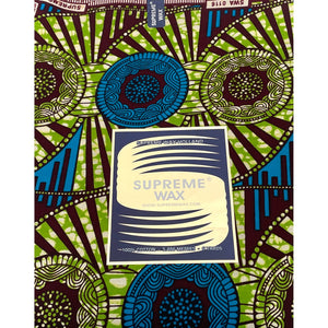 Tissu Pagne Africain - 6 Yards 100% Coton - SUPREME WAX - VERT / BLEU