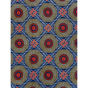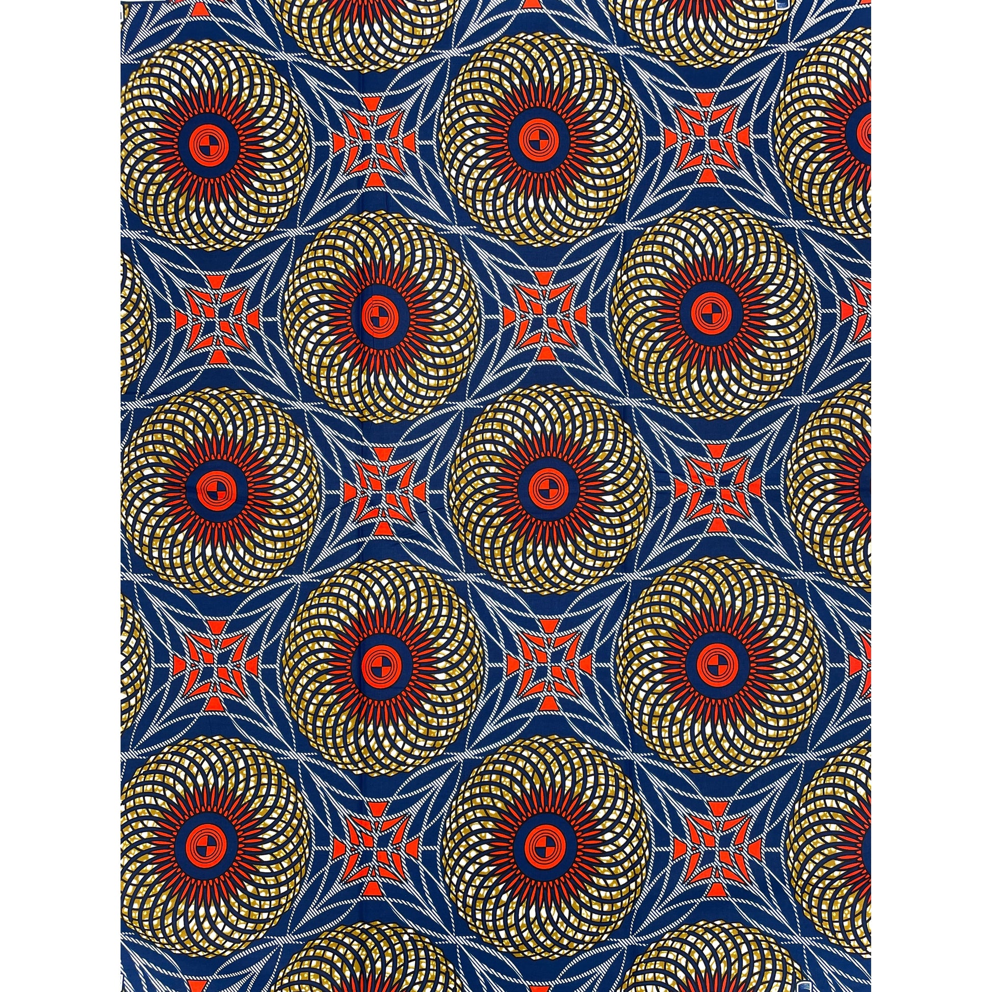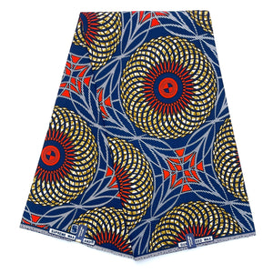 Tissu Pagne Africain - 6 Yards 100% Coton - SUPREME WAX - ORANGE / BLEU