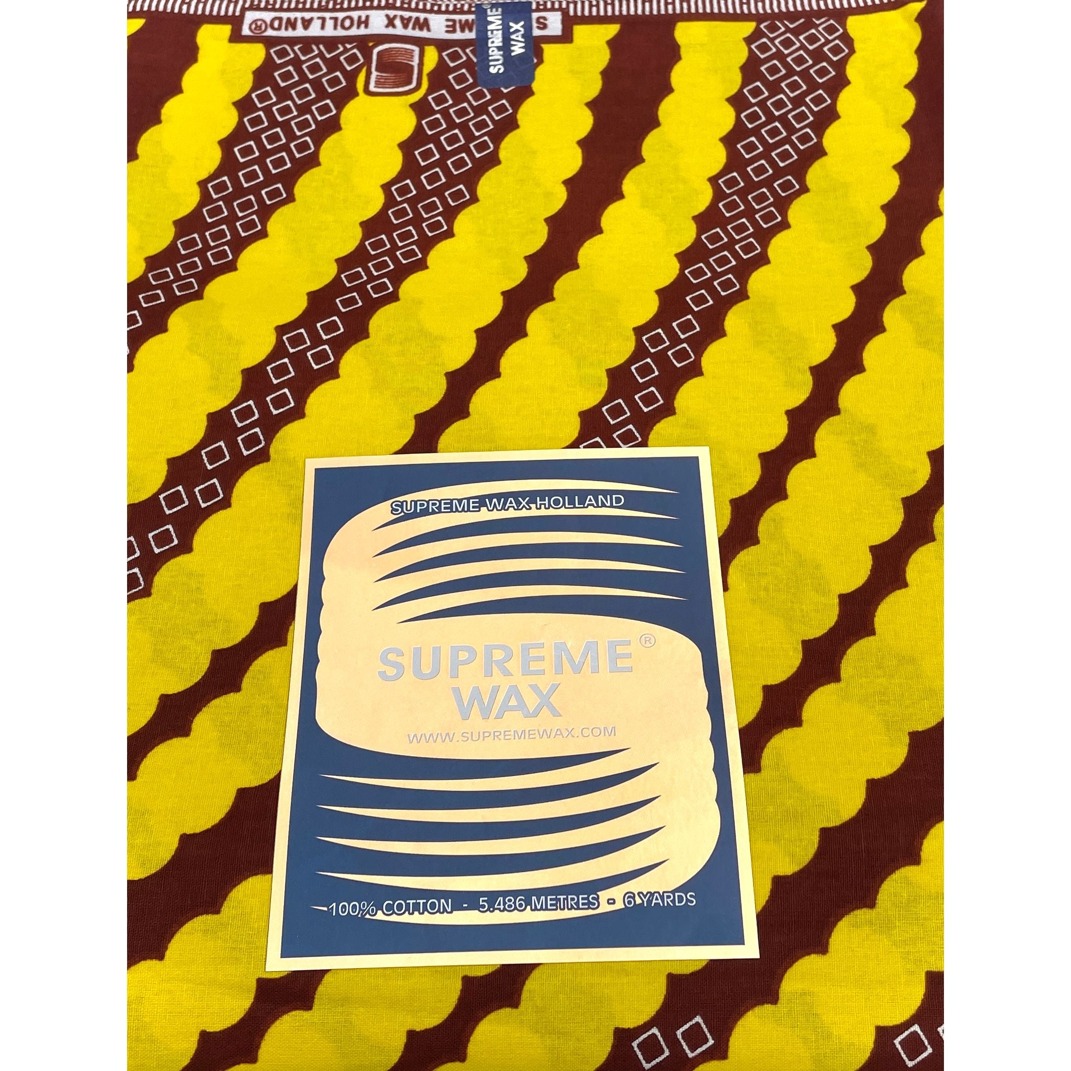 Tissu Pagne Africain - 6 Yards 100% Coton - SUPREME WAX - JAUNE / MARRON
