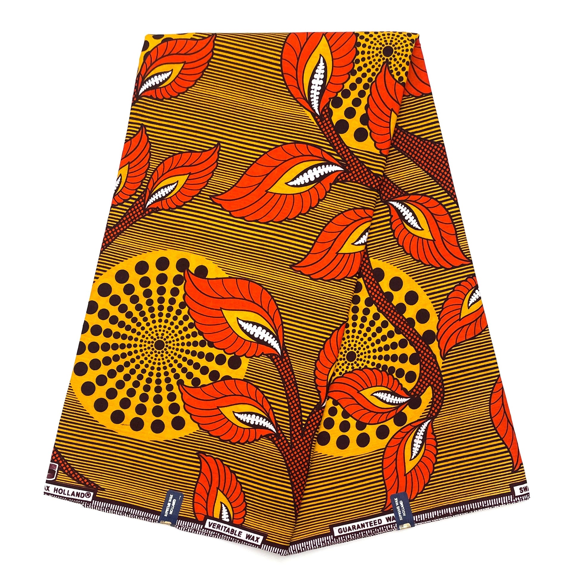 Tissu Pagne Africain - 6 Yards 100% Coton - SUPREME WAX - JAUNE / ORANGE