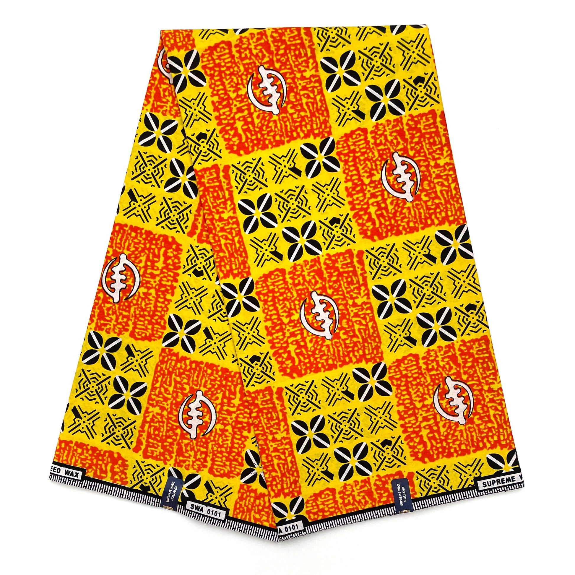 Tissu Pagne Africain - 6 Yards 100% Coton - SUPREME WAX - JAUNE / ORANGE
