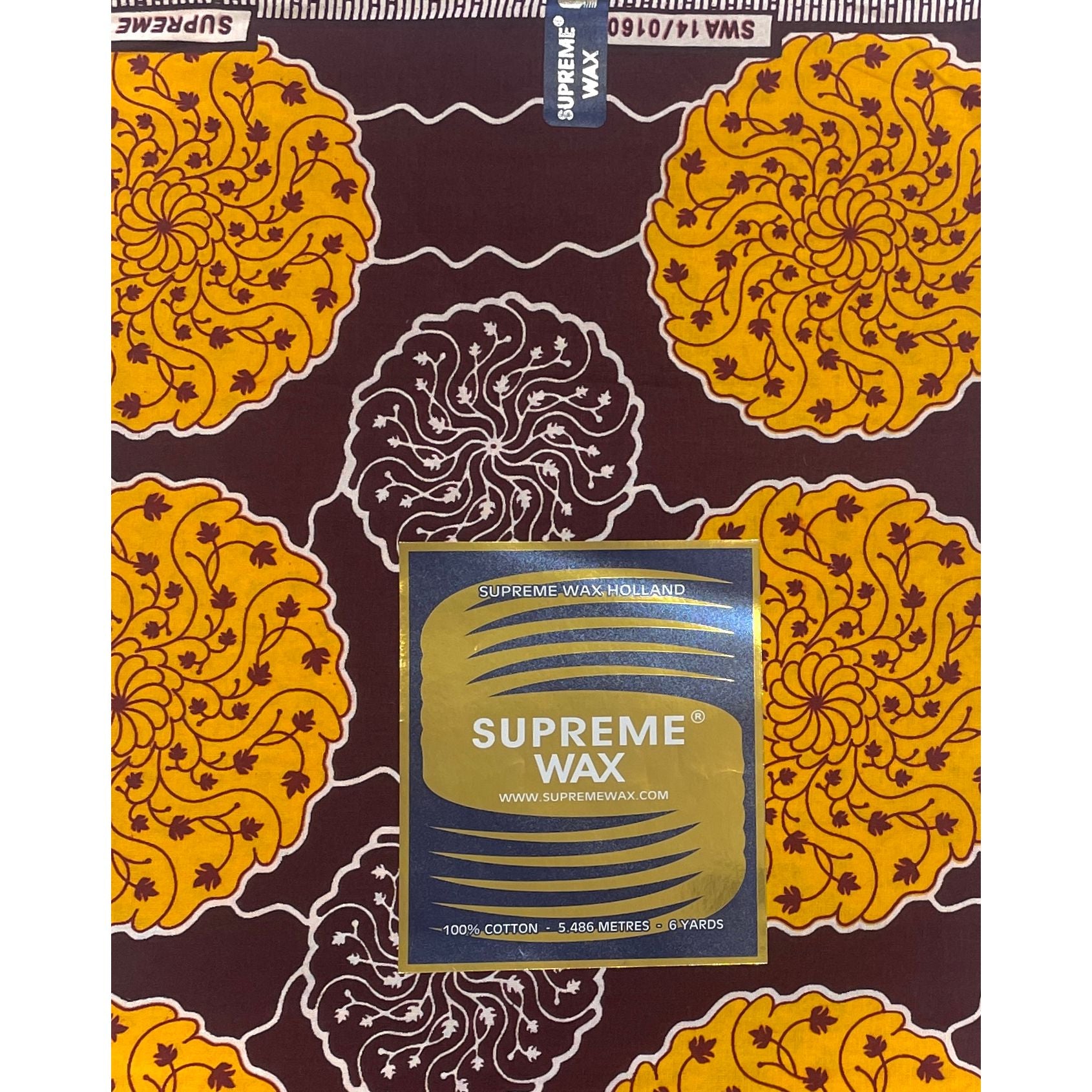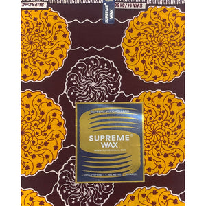 Tissu Pagne Africain - 6 Yards 100% Coton - SUPREME WAX - MARRON / JAUNE