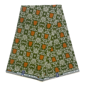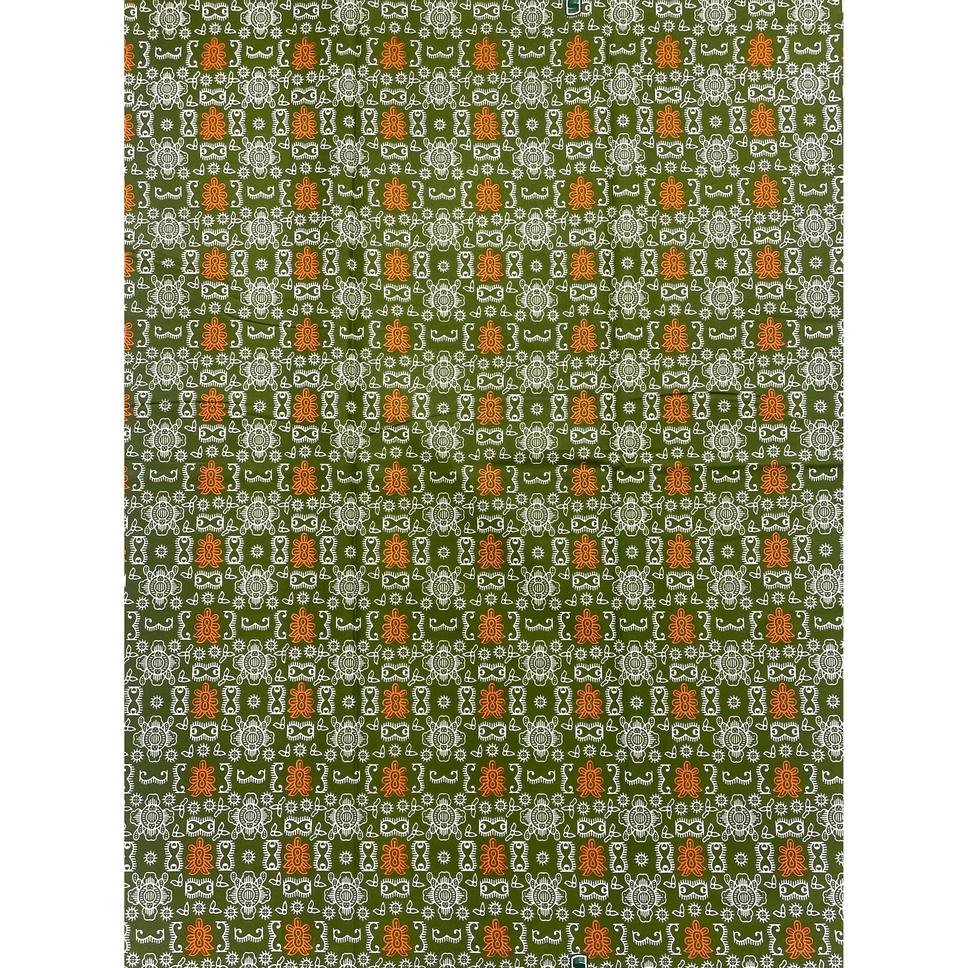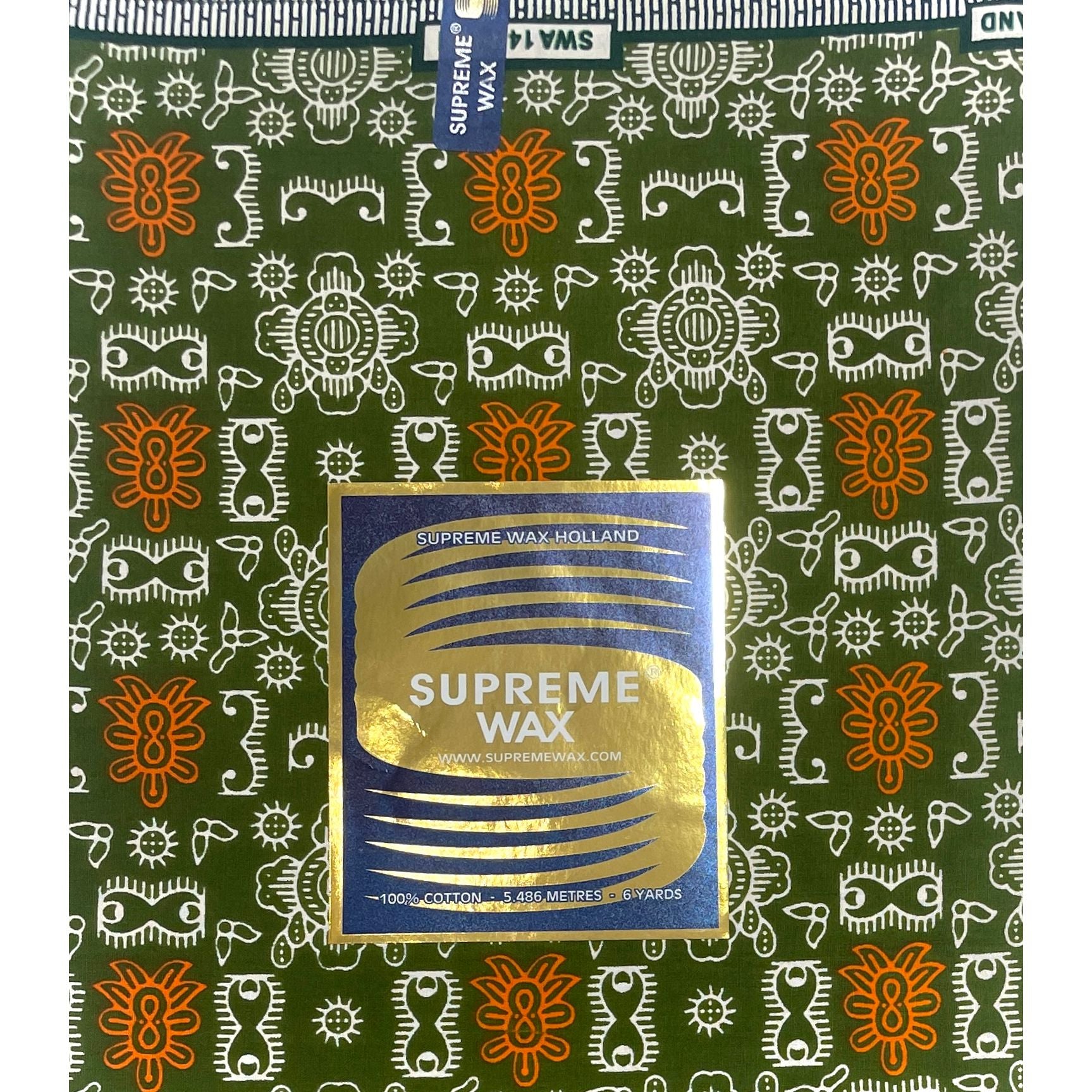 Tissu Pagne Africain - 6 Yards 100% Coton - SUPREME WAX - VERT / ORANGE