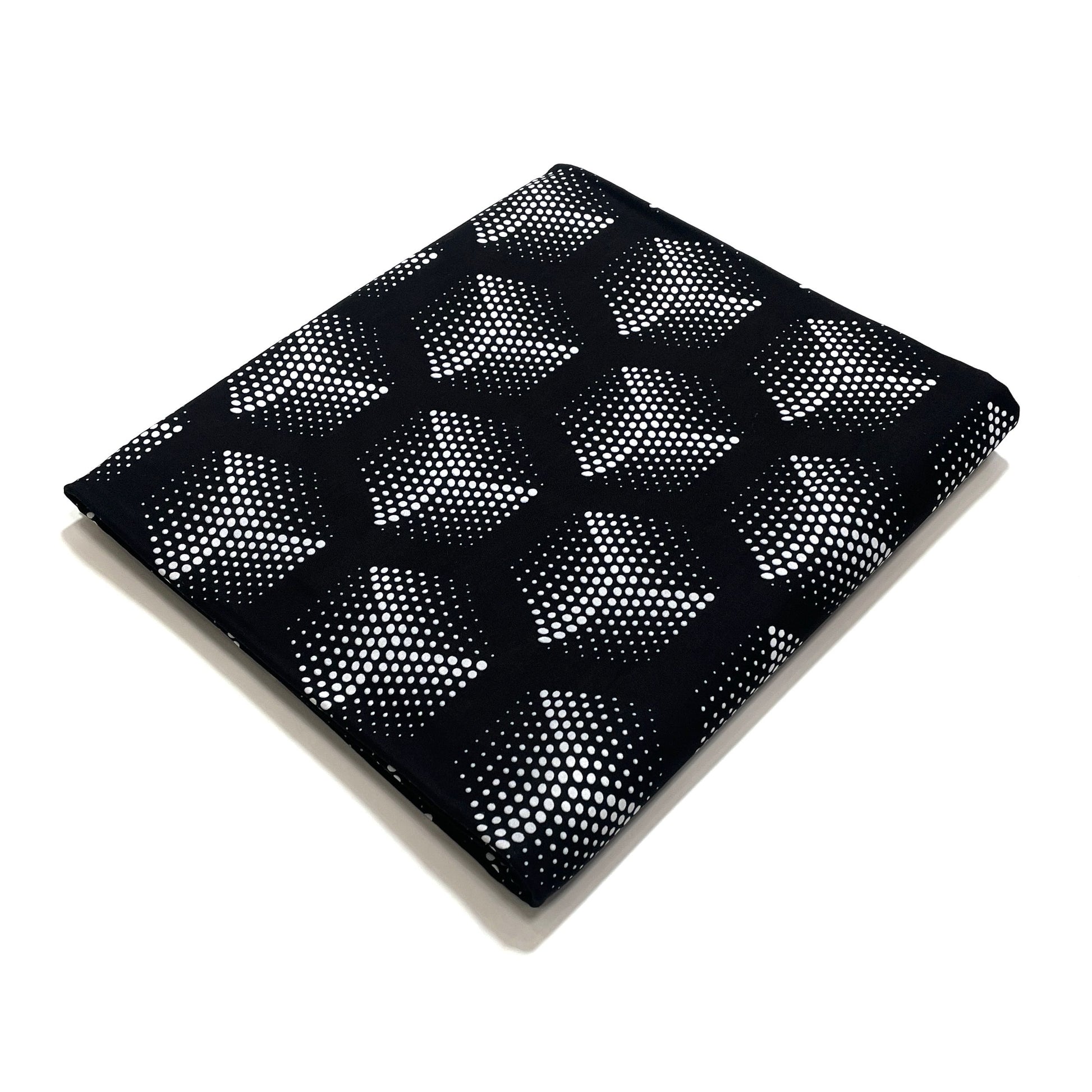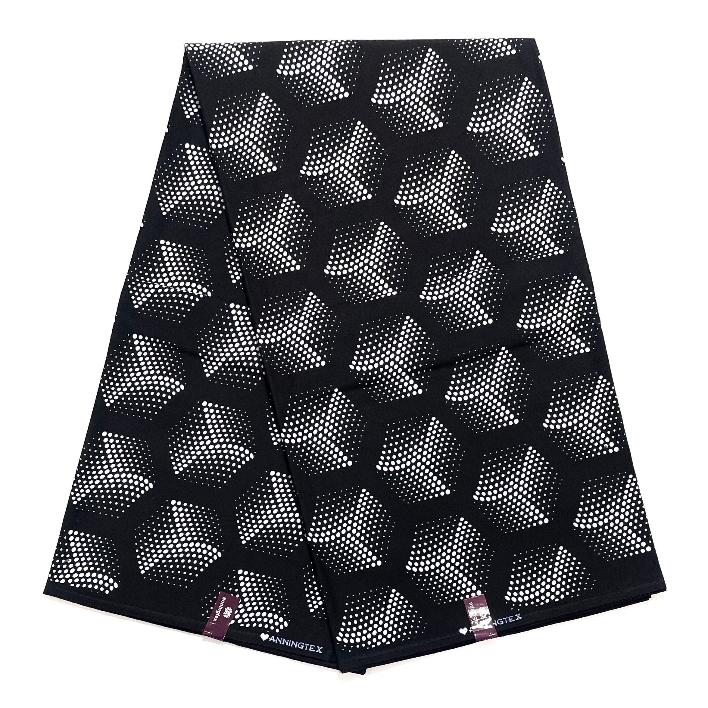Laissez-vous séduire par l'élégance intemporelle de ce Wax Tissu Pagne Africain au design Bogolan revisité. Ce coupon de 2 yards se distingue par ses motifs géométriques hexagonaux composés de pointillés blancs sur un fond noir profond, créant un contraste visuel à la fois sobre et moderne. Conçu en 100% pur coton d'une qualité exceptionnelle, ce textile offre un rendu sans équivalent grâce à son toucher souple et tendre. C'est la pièce parfaite pour intégrer du wax africain en coton à vos projets de couture avec une touche graphique épurée.