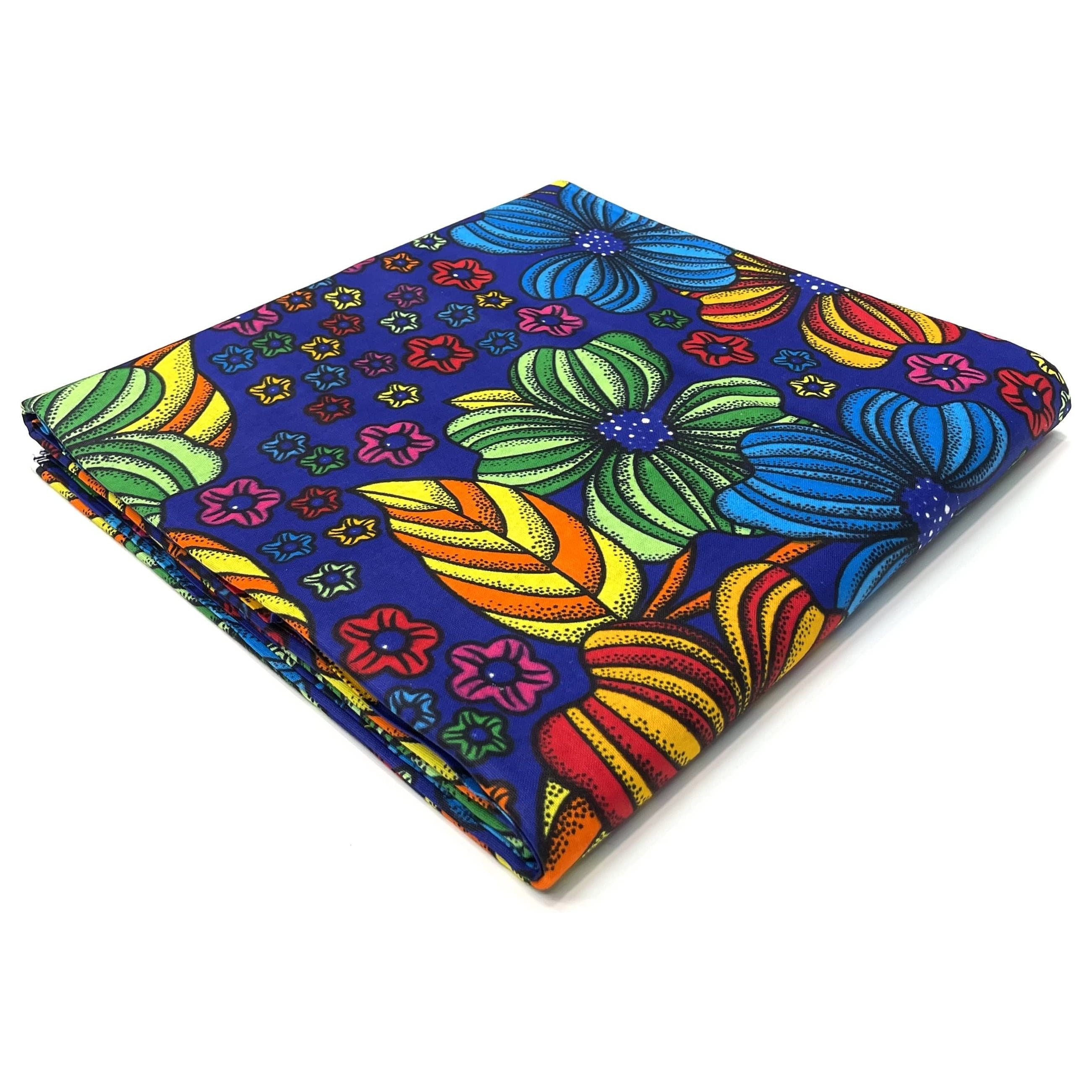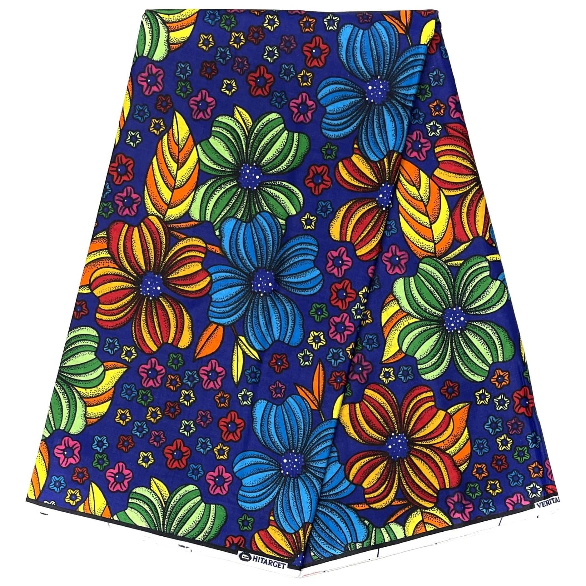Wax Pagne Africain - Tissu 6 Yards 100% Coton - Fond BLEU