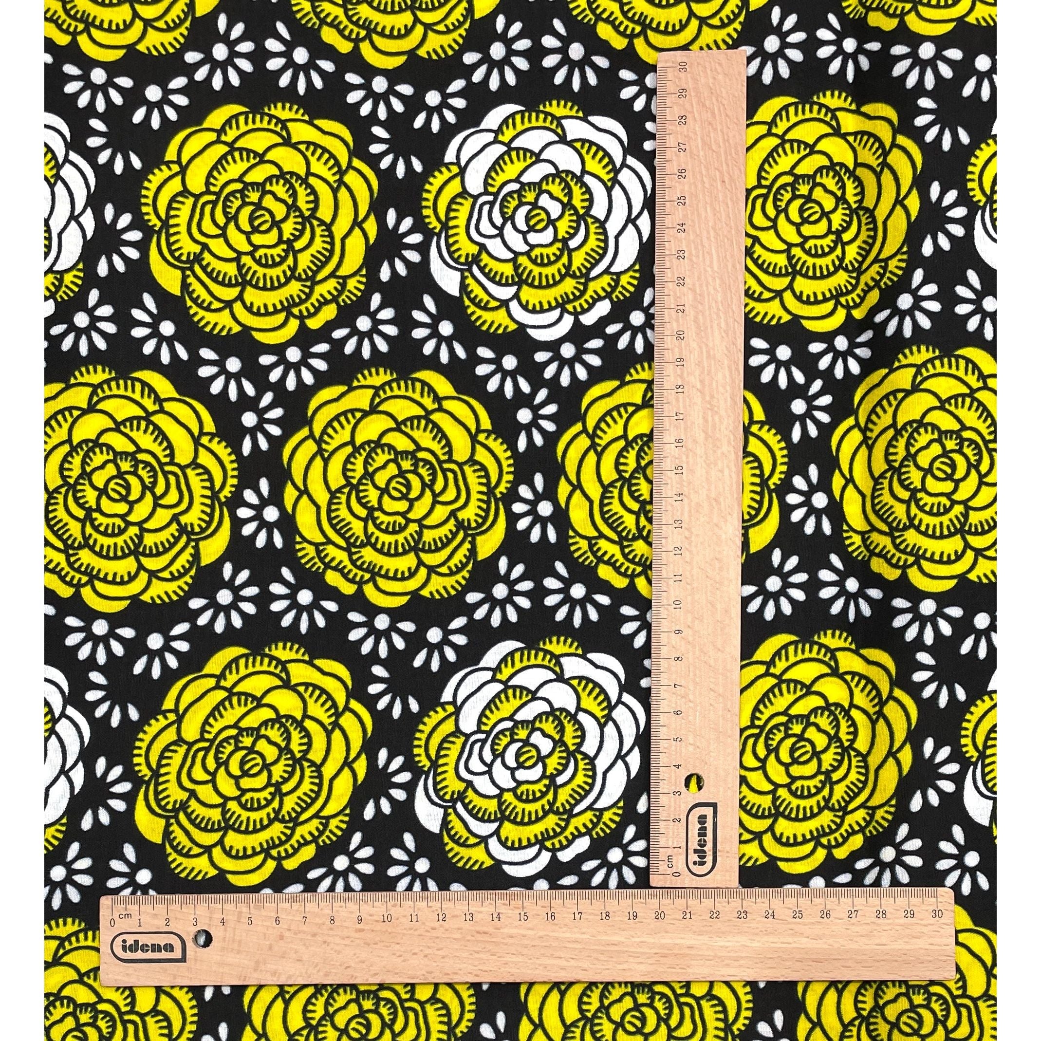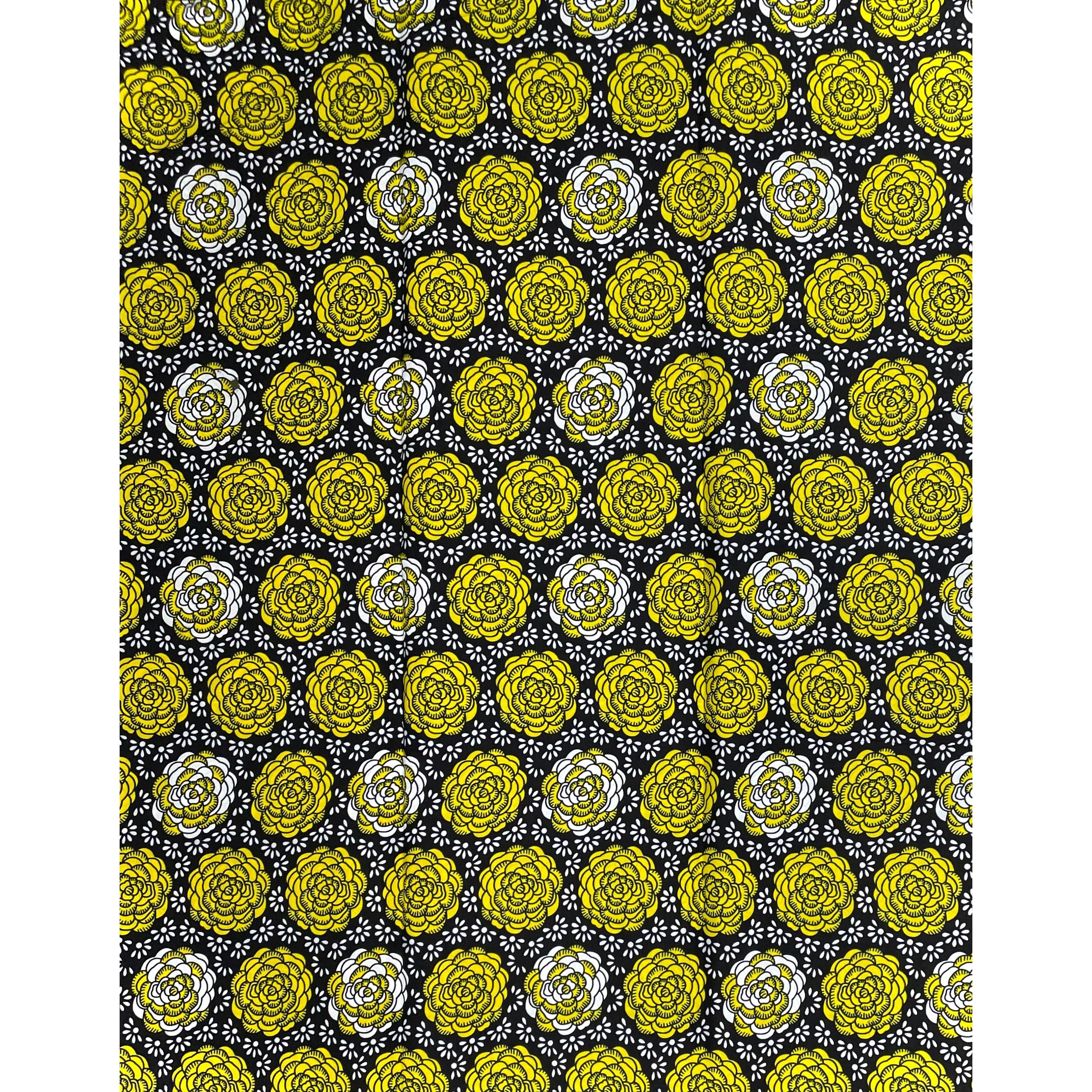 Wax Pagne Africain - Tissu 100% Coton - JAUNE / NOIR / BLANC