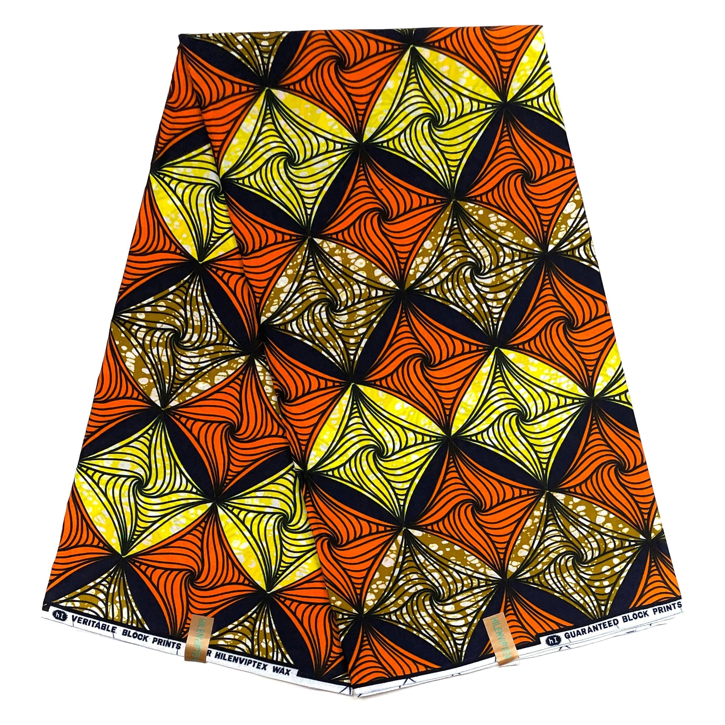 Wax Pagne Africain - Tissu 100% Coton - JAUNE / ORANGE