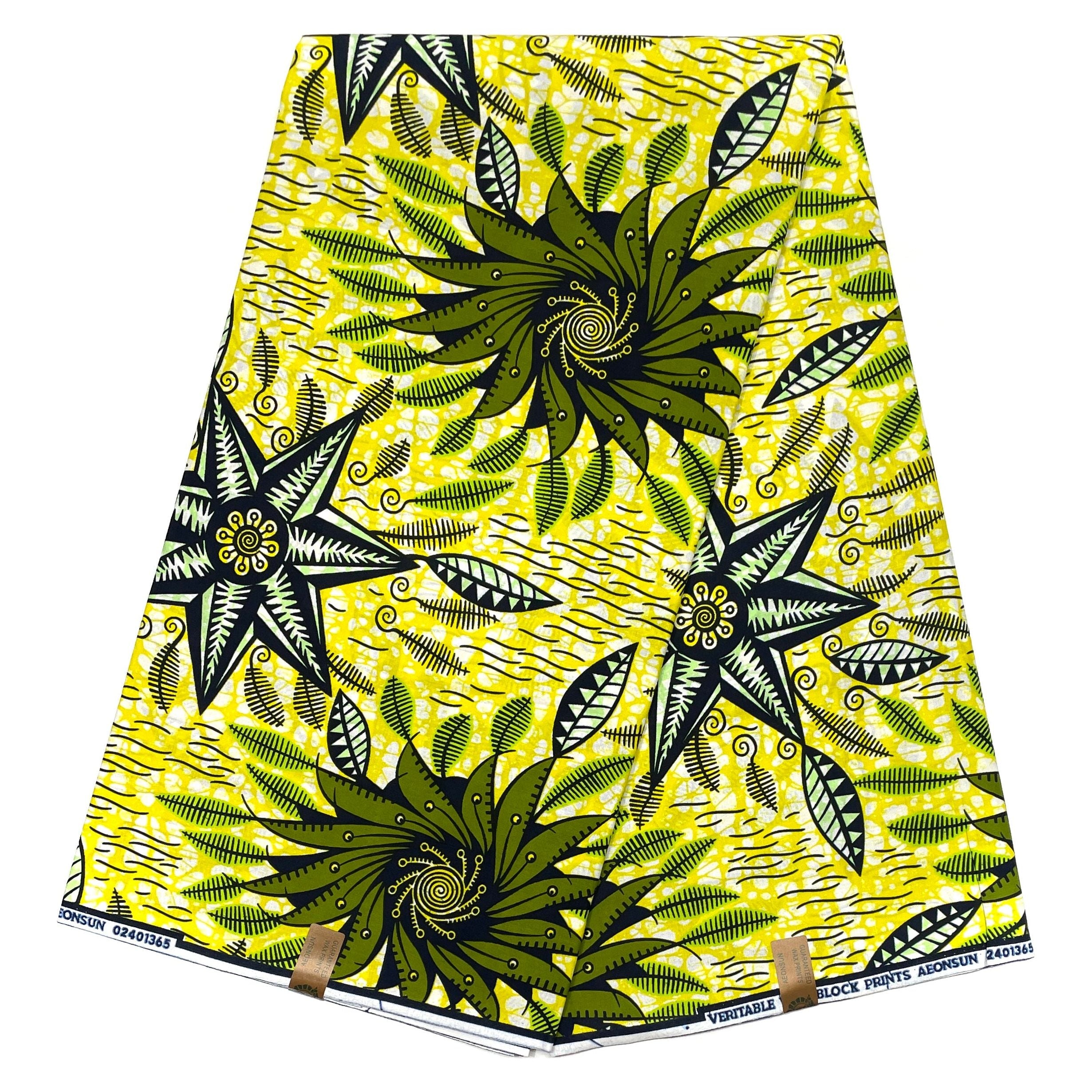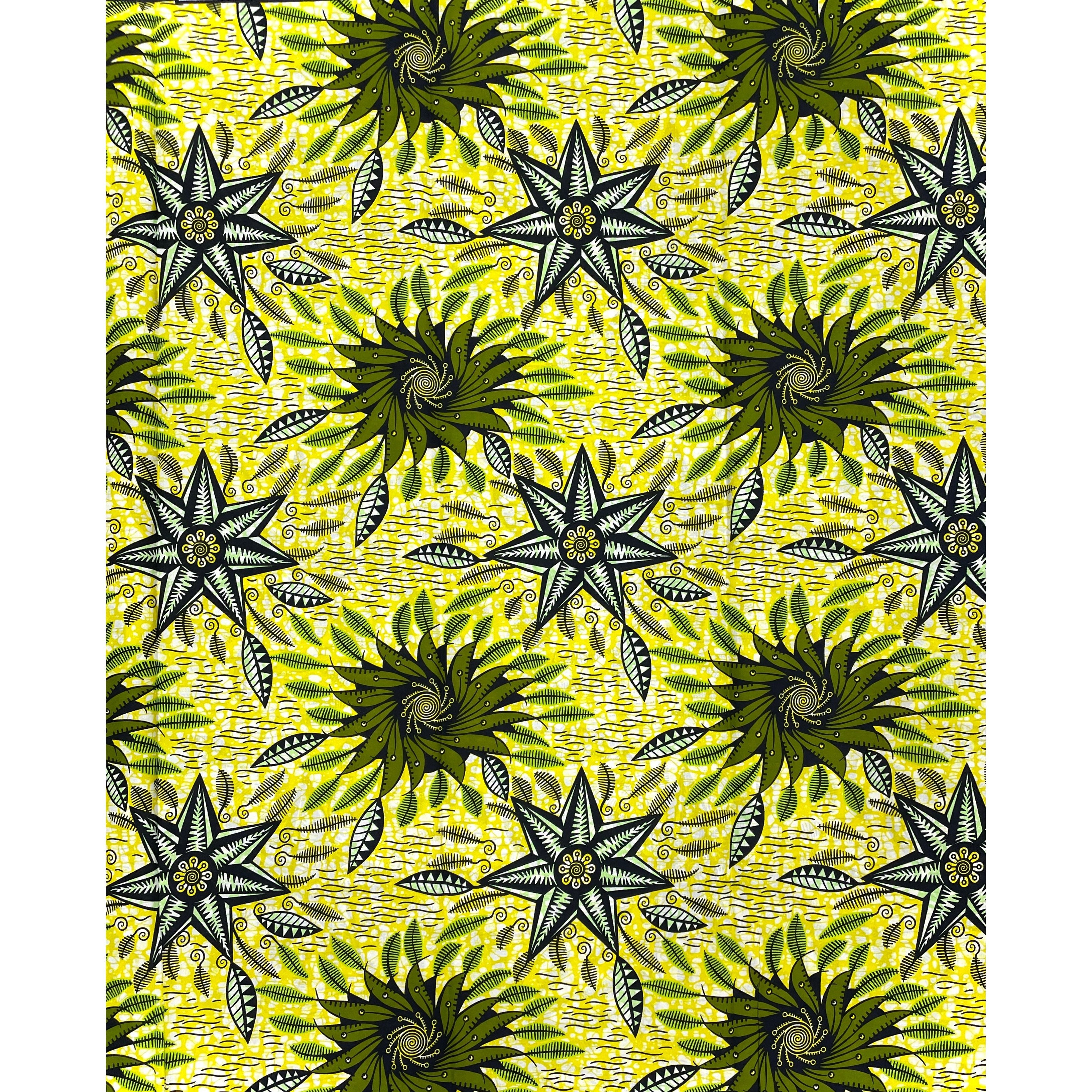 Wax Pagne Africain - Tissu 6 Yards 100% Coton - JAUNE / VERT