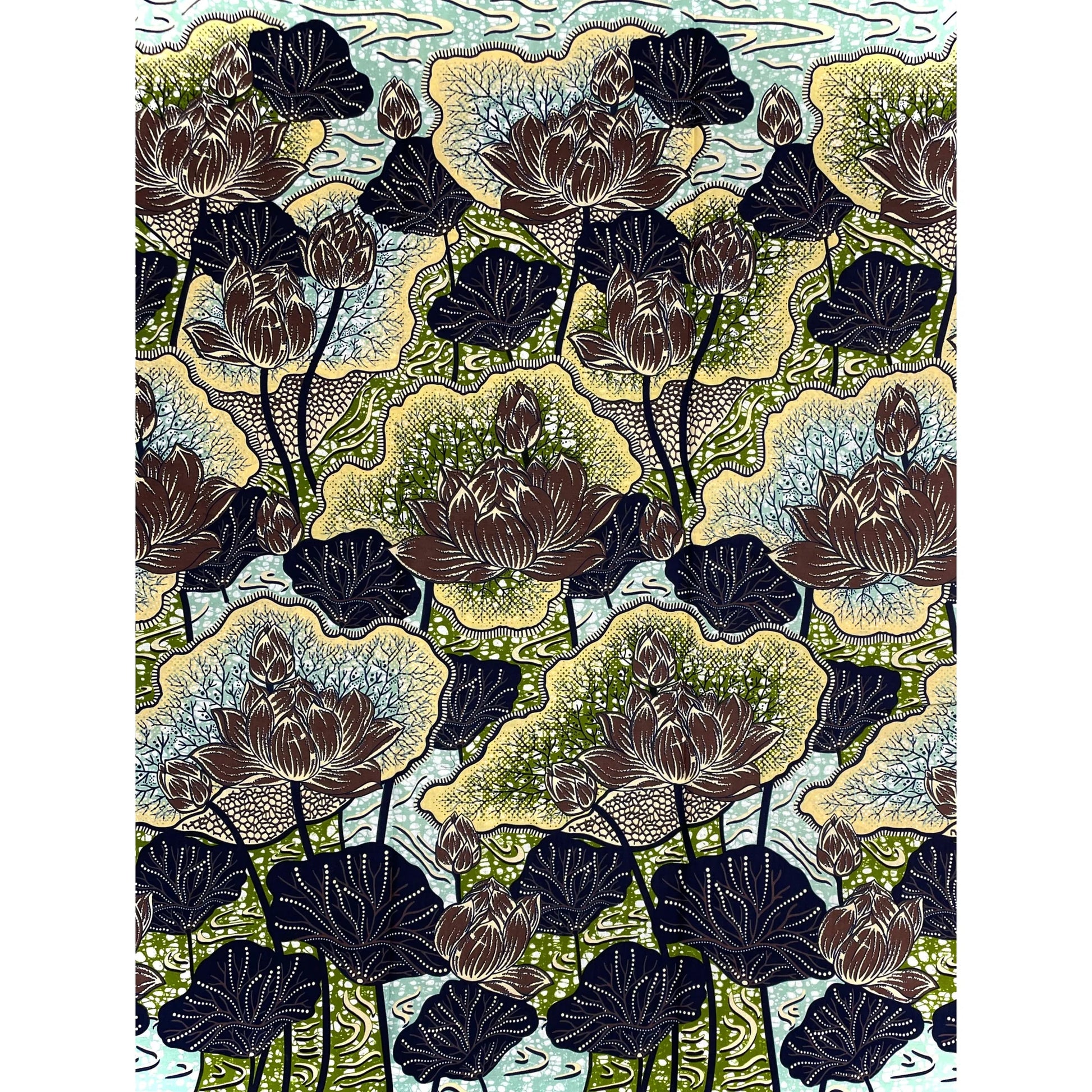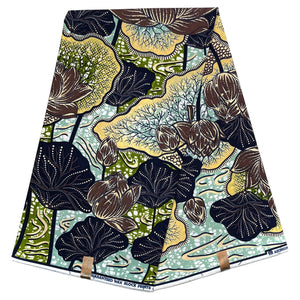 Wax Pagne Africain - Tissu 6 Yards 100% Coton - BLEU / VERT / MARRON