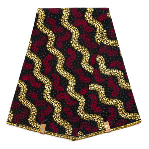 Wax Pagne Africain - Tissu 6 Yards 100% Coton - BORDEAUX / BEIGE