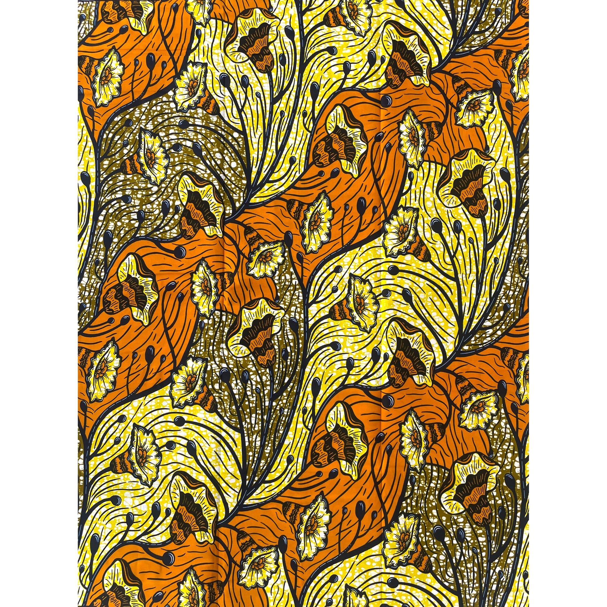 Wax Pagne Africain - Tissu 6 Yards 100% Coton - ORANGE / JAUNE