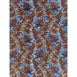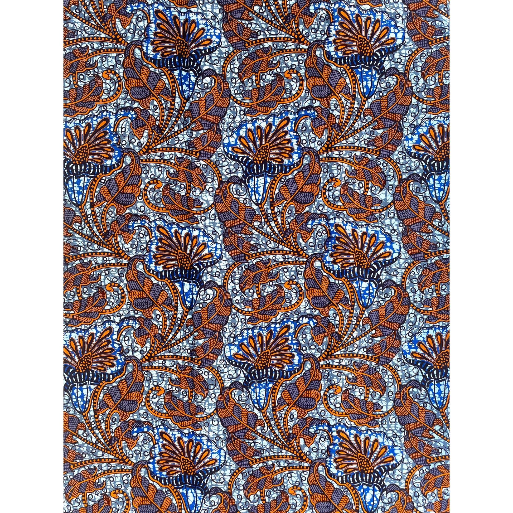 Wax Pagne Africain - Tissu 6 Yards 100% Coton - ORANGE / GRIS