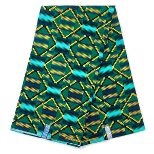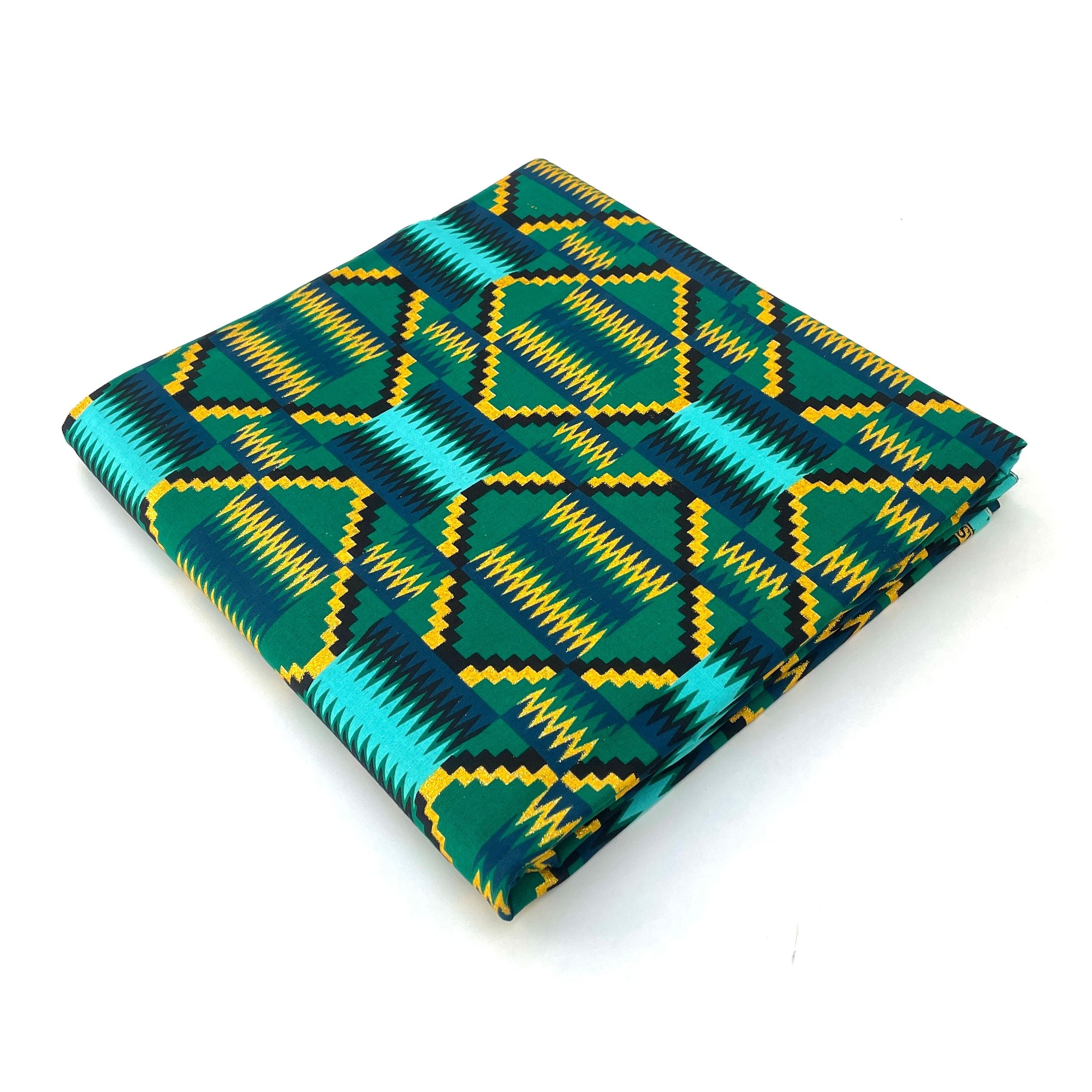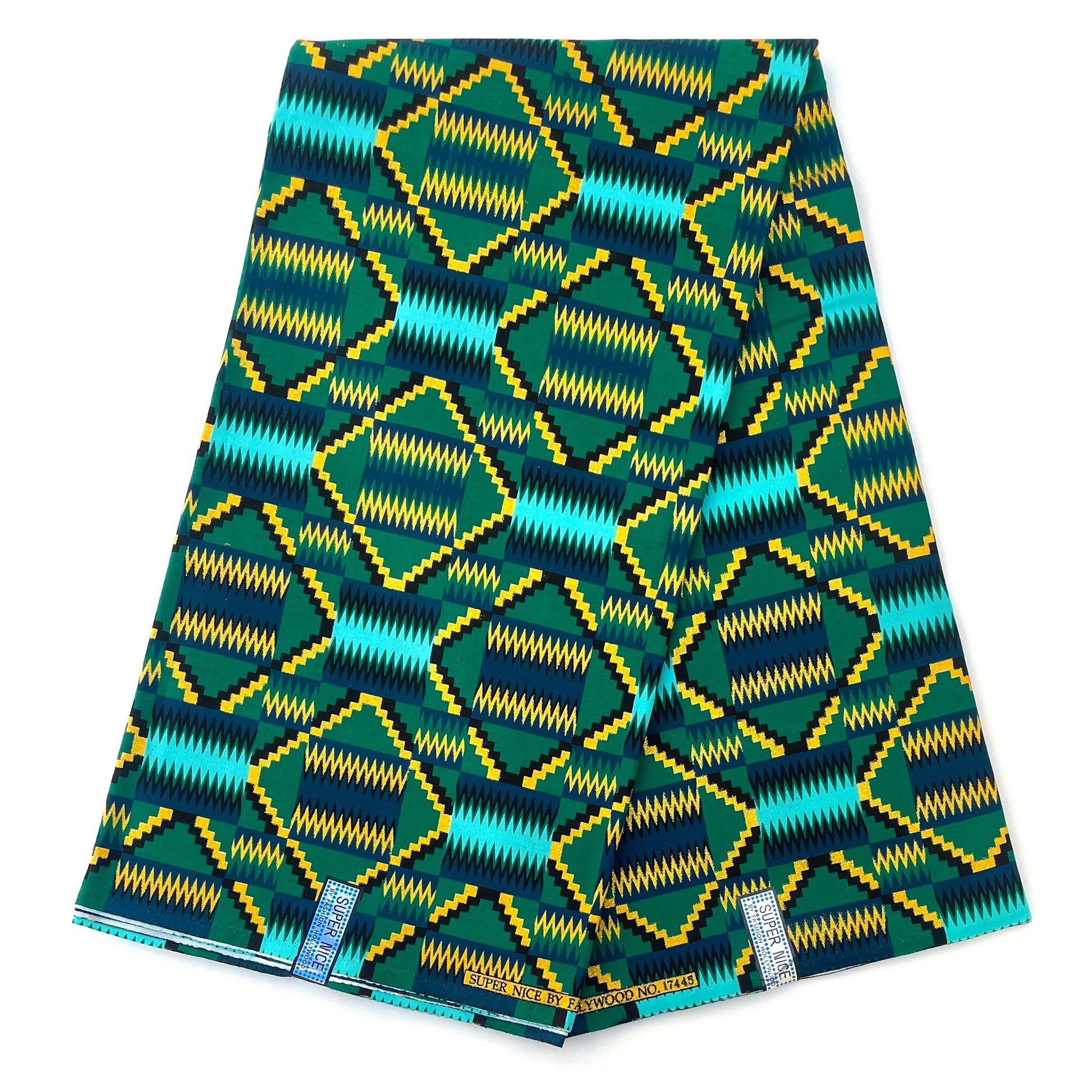 Wax Pagne Africain - Tissu 6 Yards 100% Coton - Pailleté et Brillant - VERT / DORÉ
