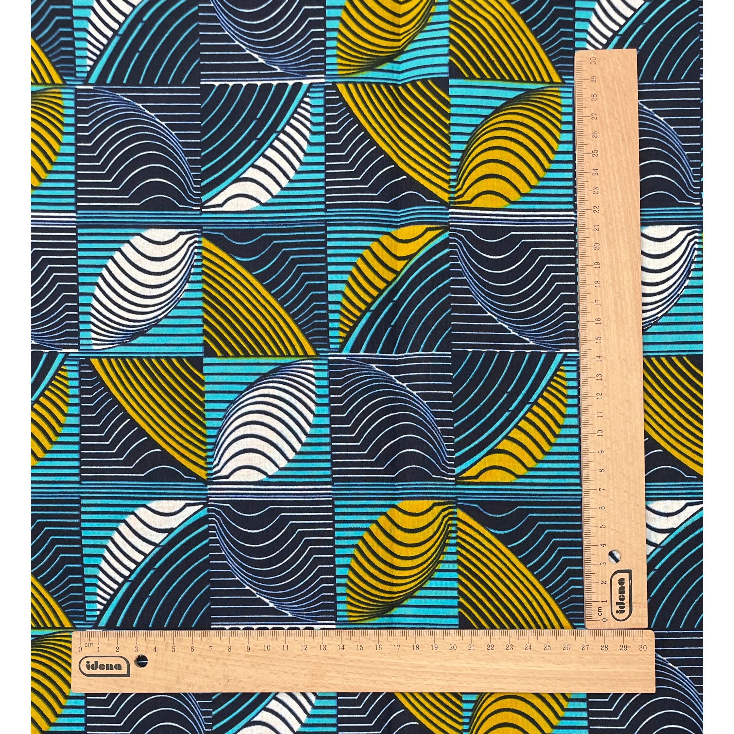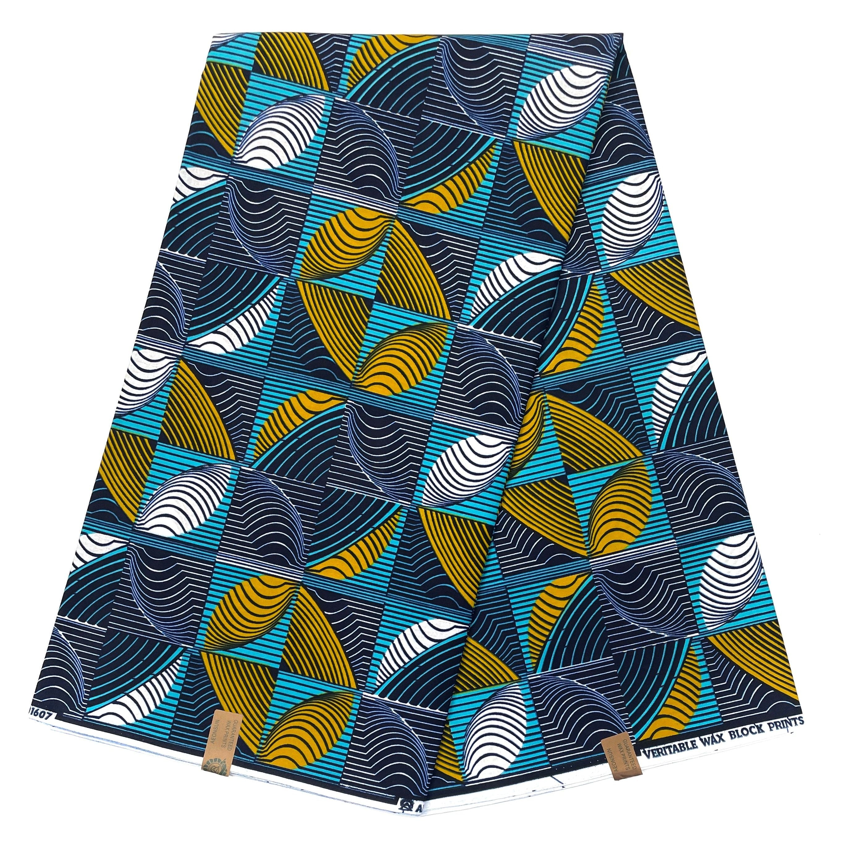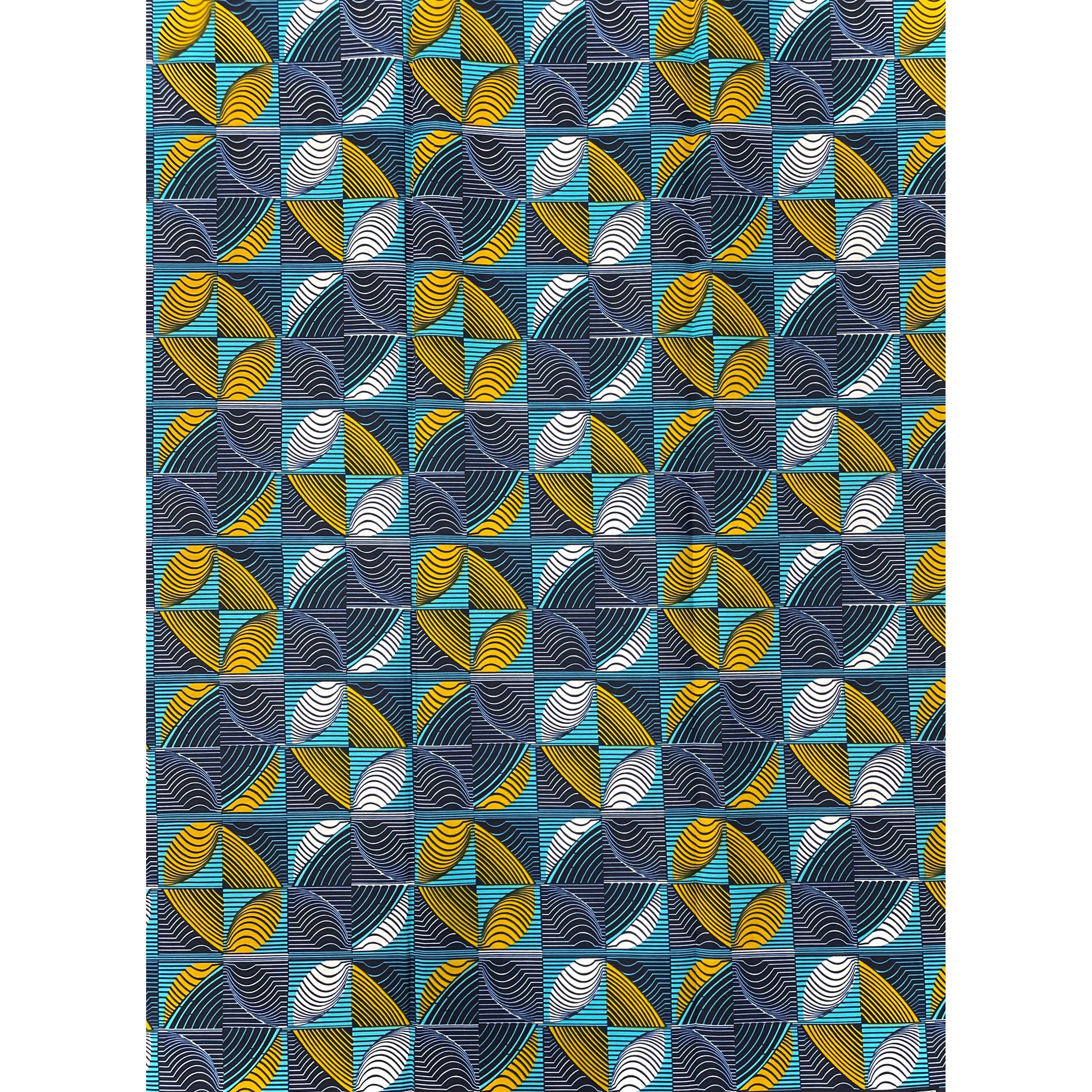 Wax Pagne Africain - Tissu 6 Yards 100% Coton - BLEU / BLANC