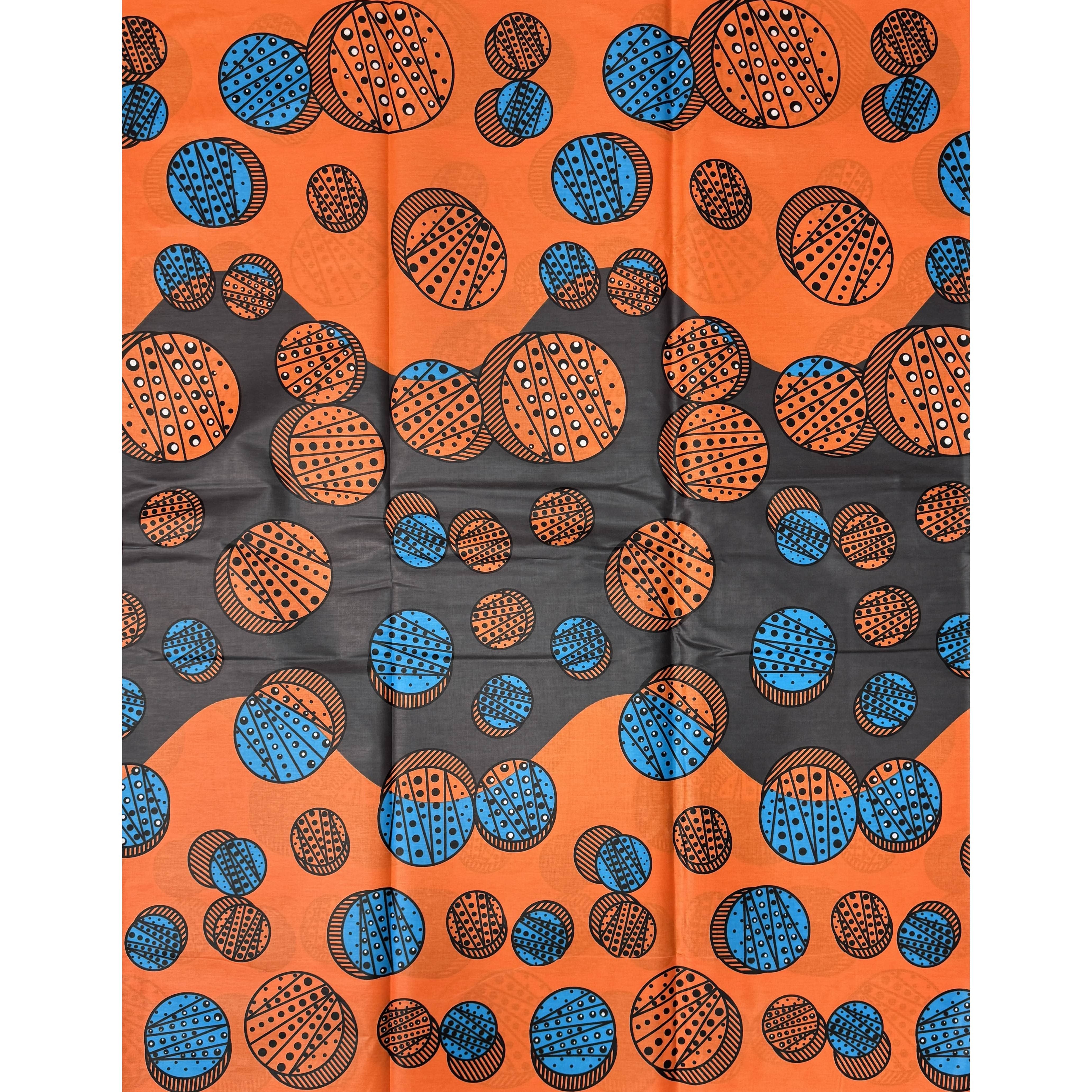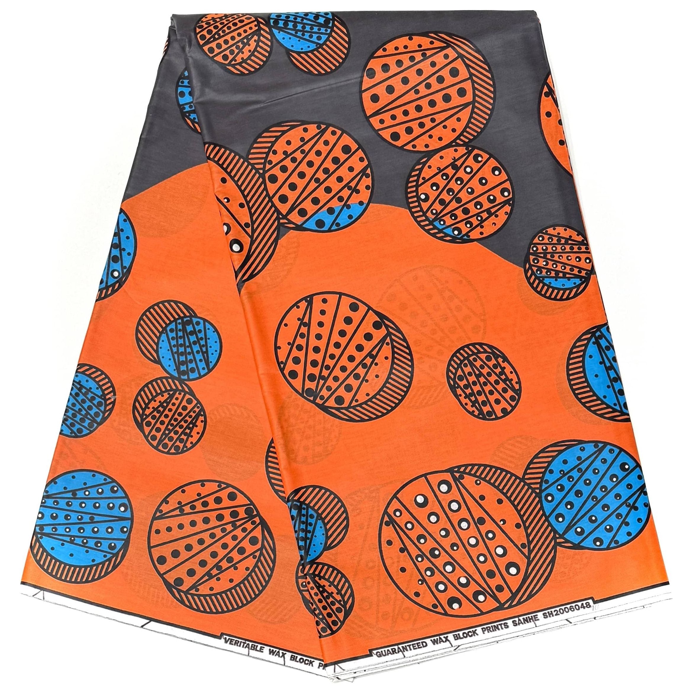 Wax Pagne Africain - Tissu Satiné 6 Yards 100% Coton - ORANGE / GRIS