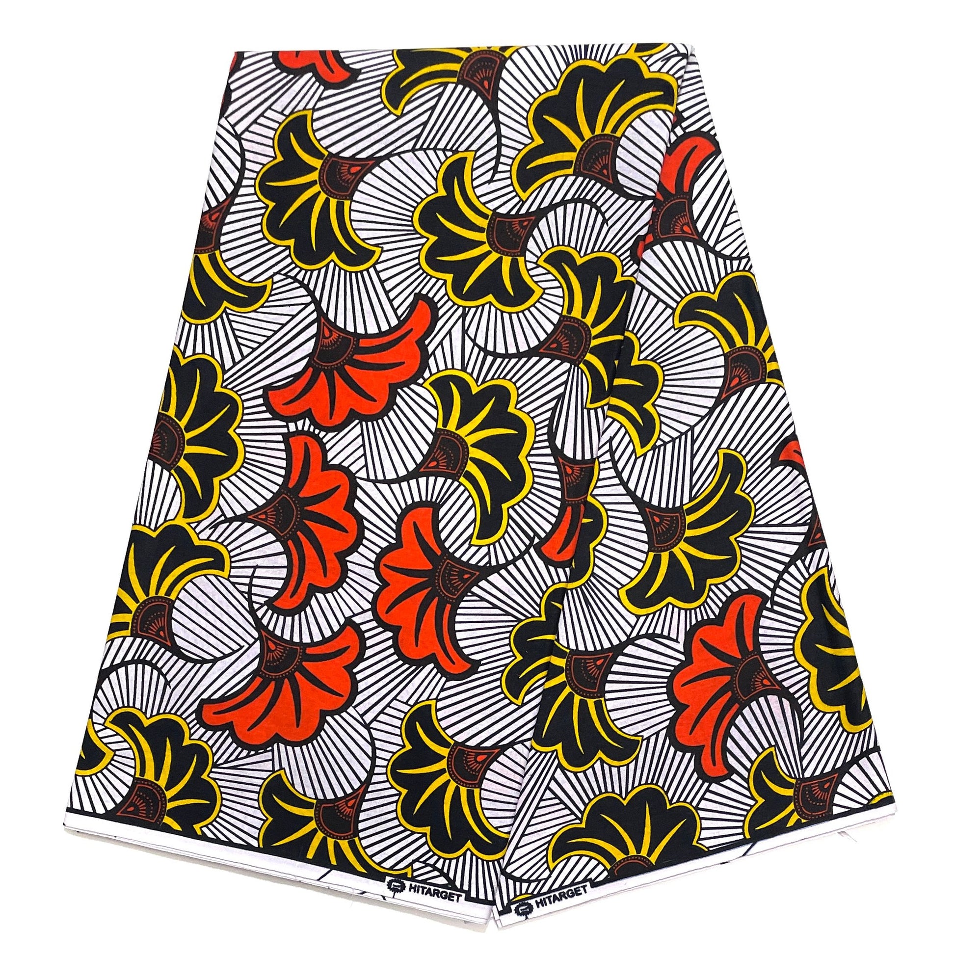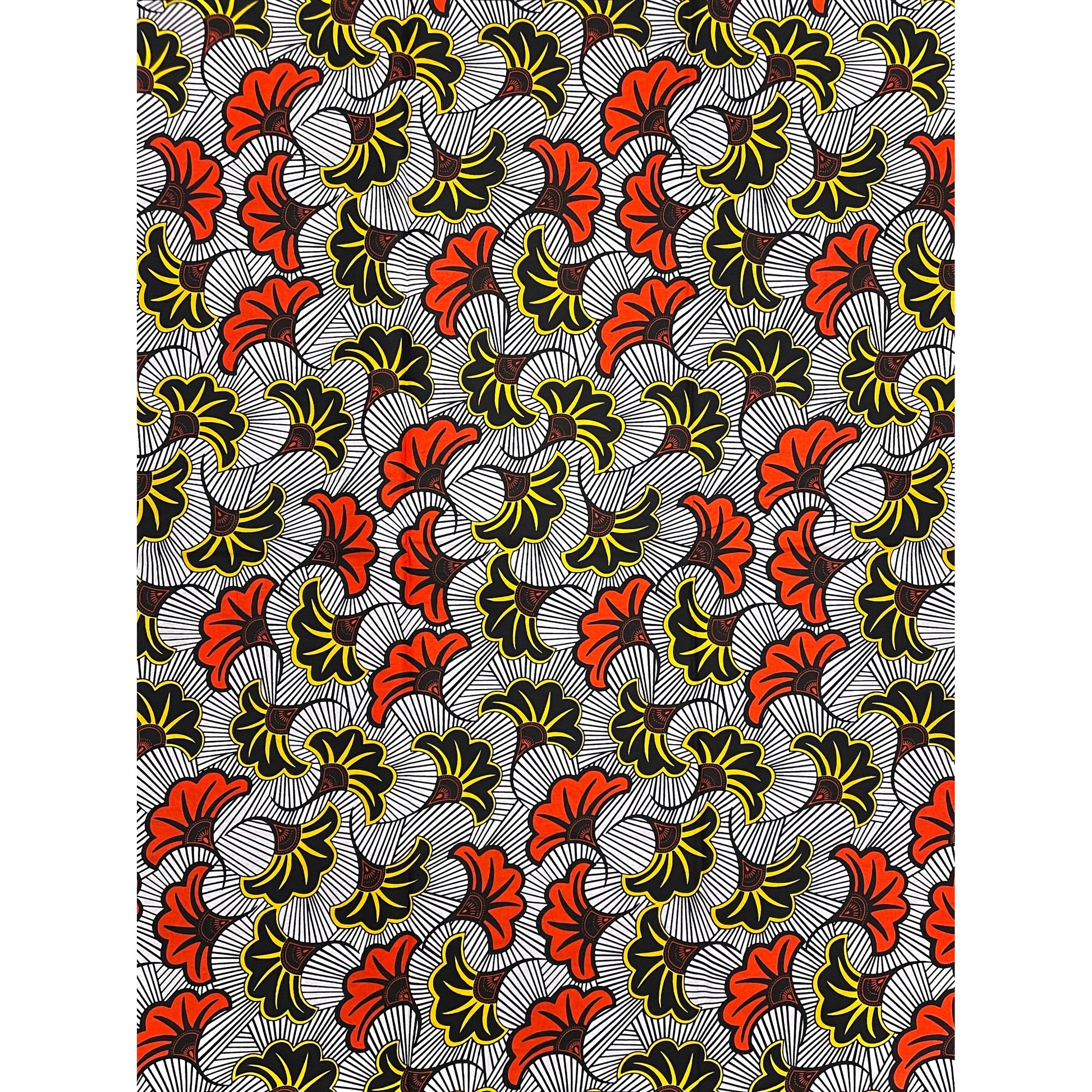 Wax Tissu Pagne Africain - Coupon 2 Yards 100% Coton - BLANC / NOIR / ORANGE