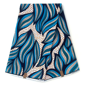 Wax Tissu Pagne Africain - Coupon 2 Yards 100% Coton - BLEU / SAUMON CLAIR
