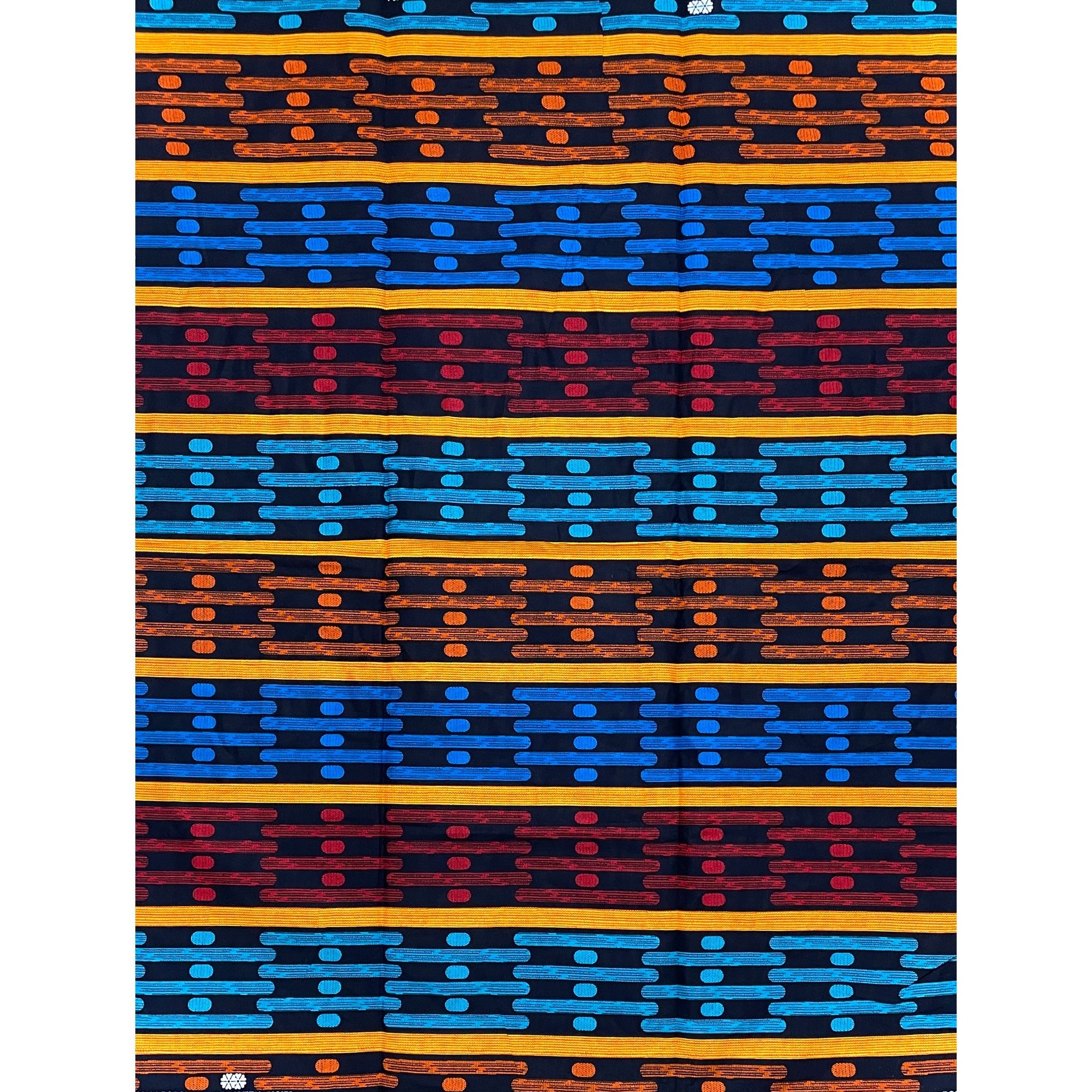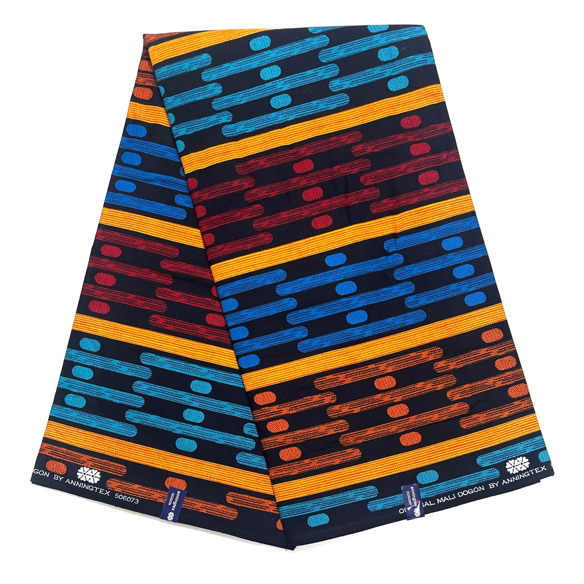 Wax Tissu Pagne Africain - Coupon 2 Yards 100% Coton - BOGOLAN BLEU / ROUGE