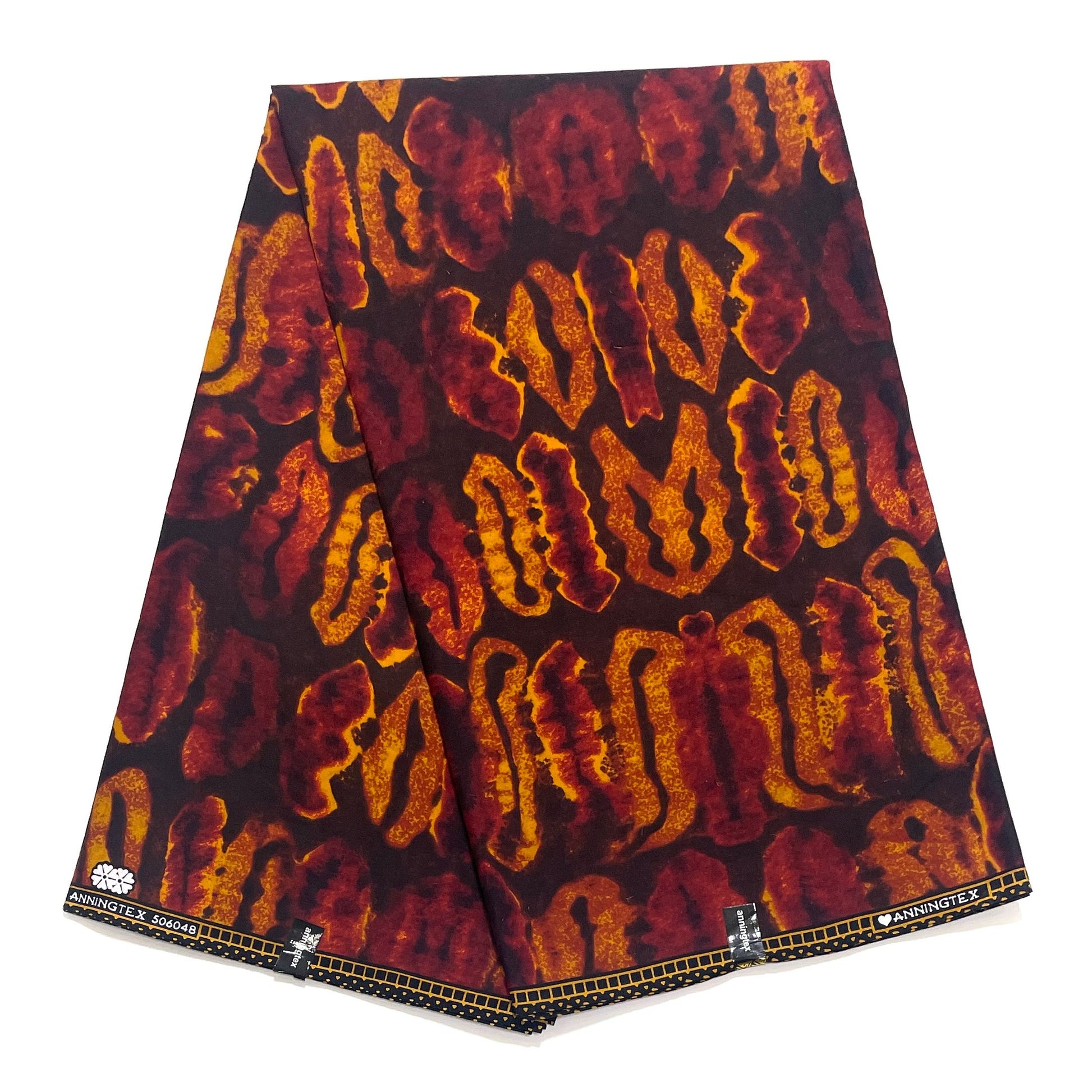 Wax Tissu Pagne Africain - Coupon 2 Yards 100% Coton - BOGOLAN MARRON / ORANGE