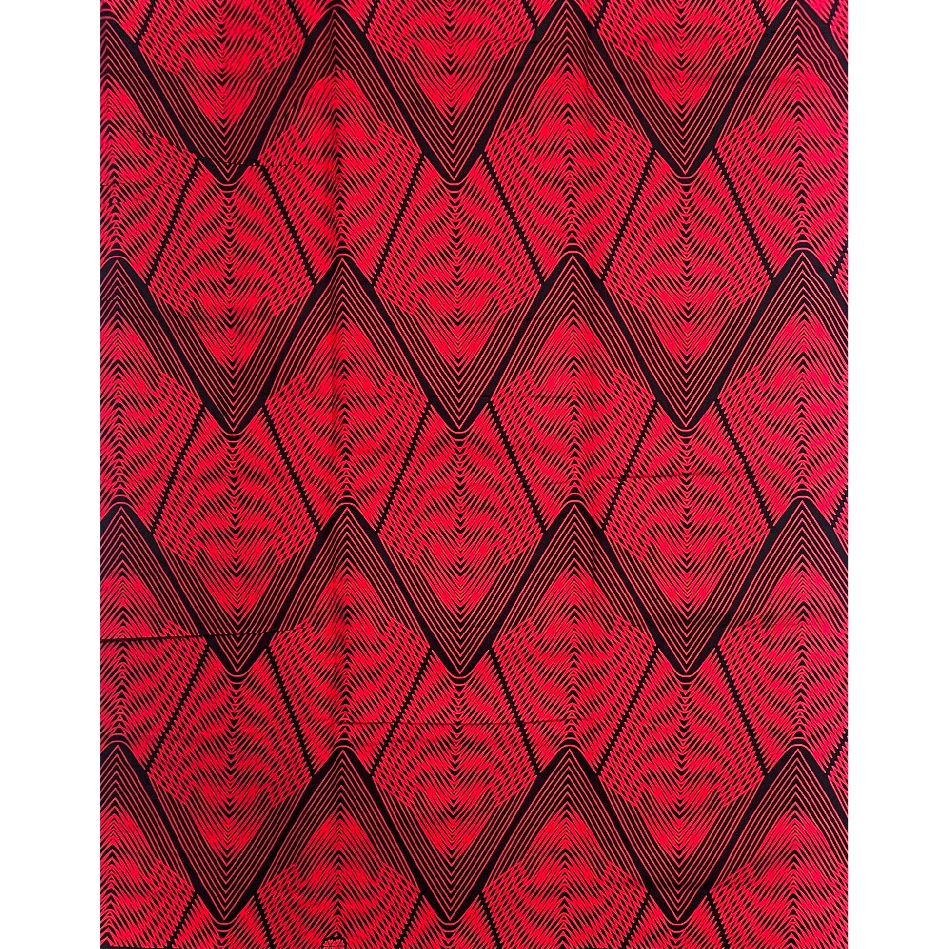 Wax Tissu Pagne Africain - Coupon 2 Yards 100% Coton - BOGOLAN ROUGE / NOIR