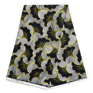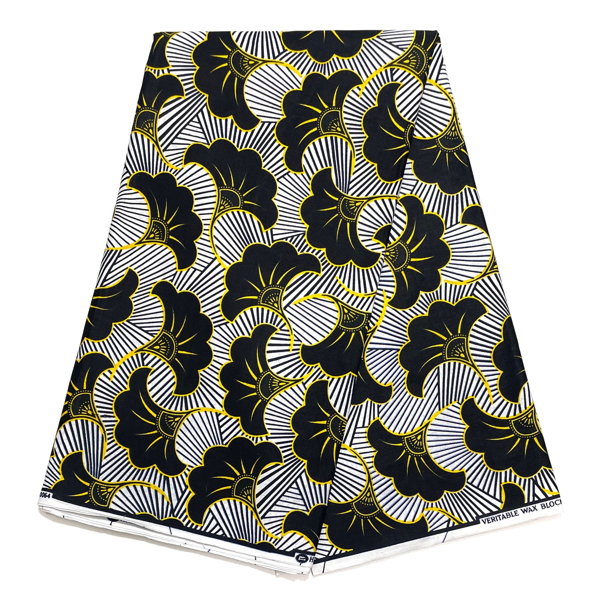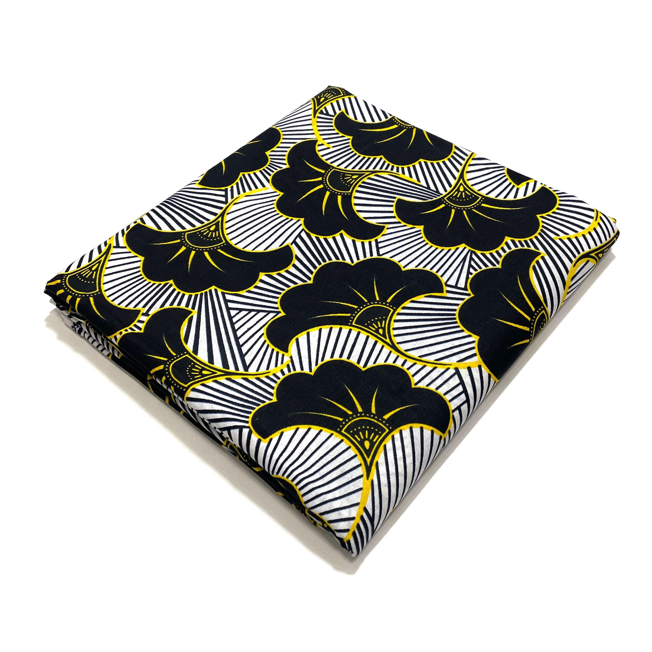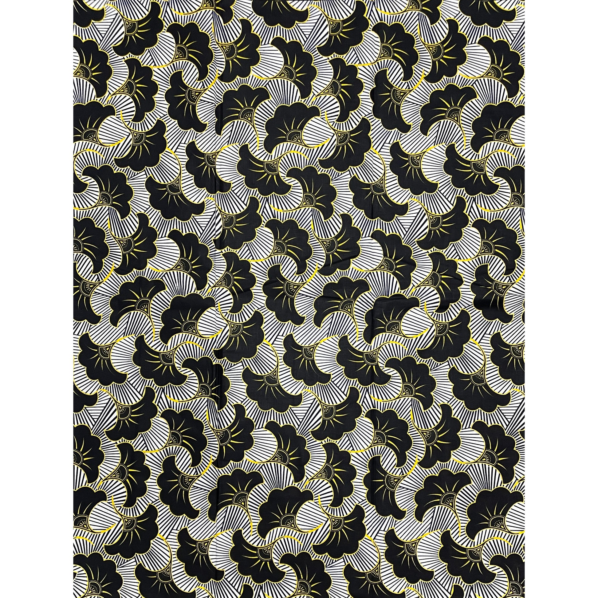 Wax Tissu Pagne Africain - Coupon 2 Yards 100% Coton - BLANC / NOIR