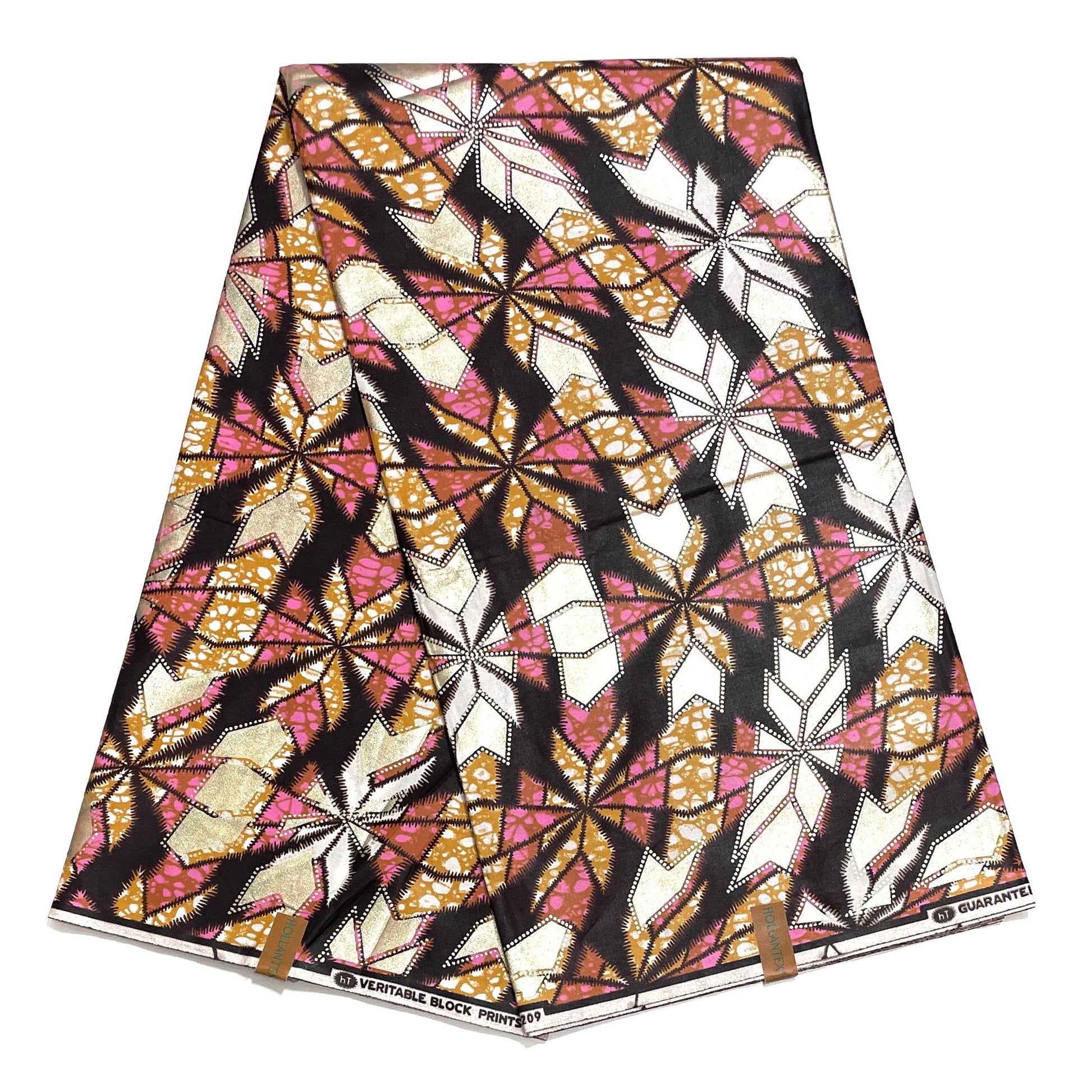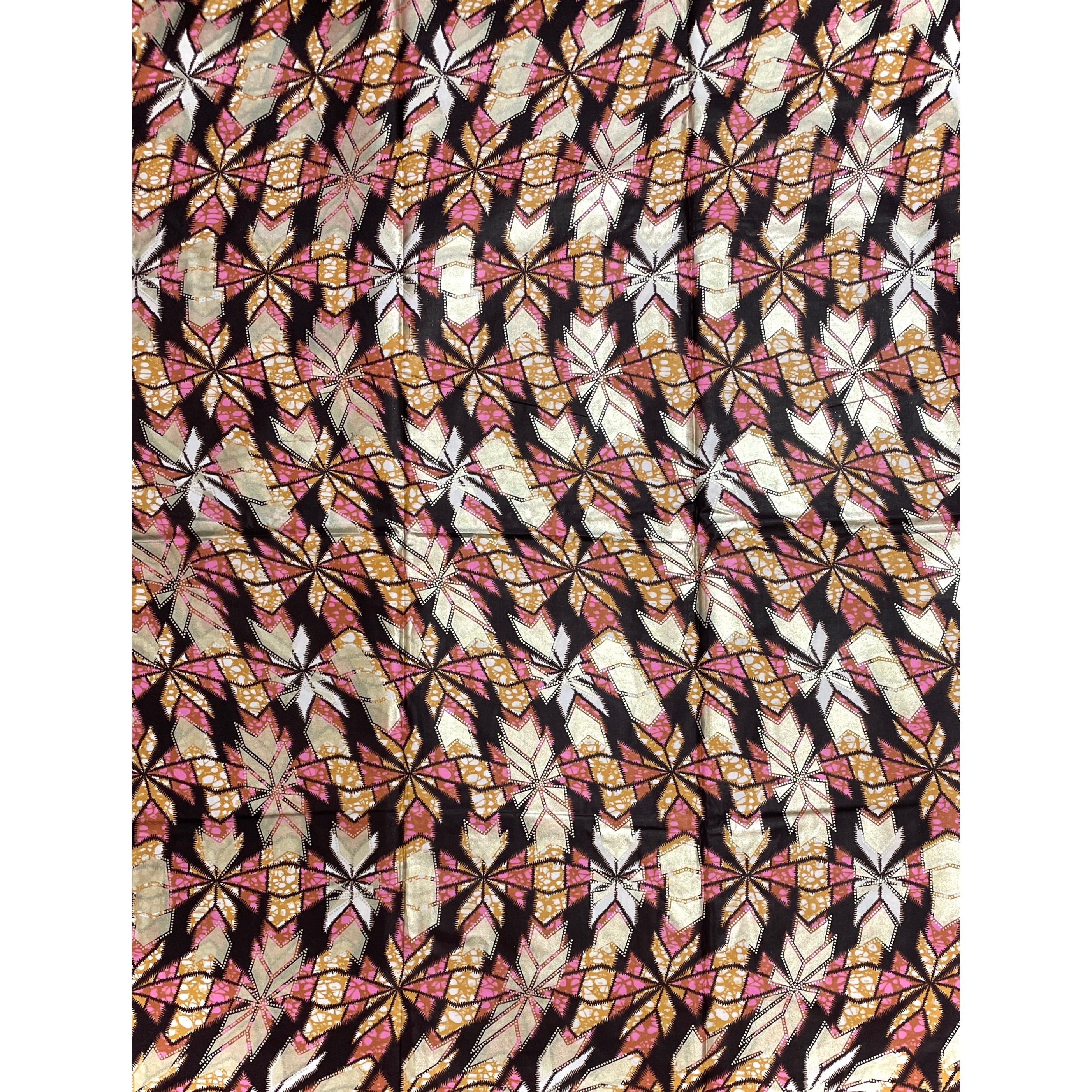 Wax Tissu Pagne Africain - Coupon 2 Yards 100% Coton - GOLDEN ROSE / MARRON