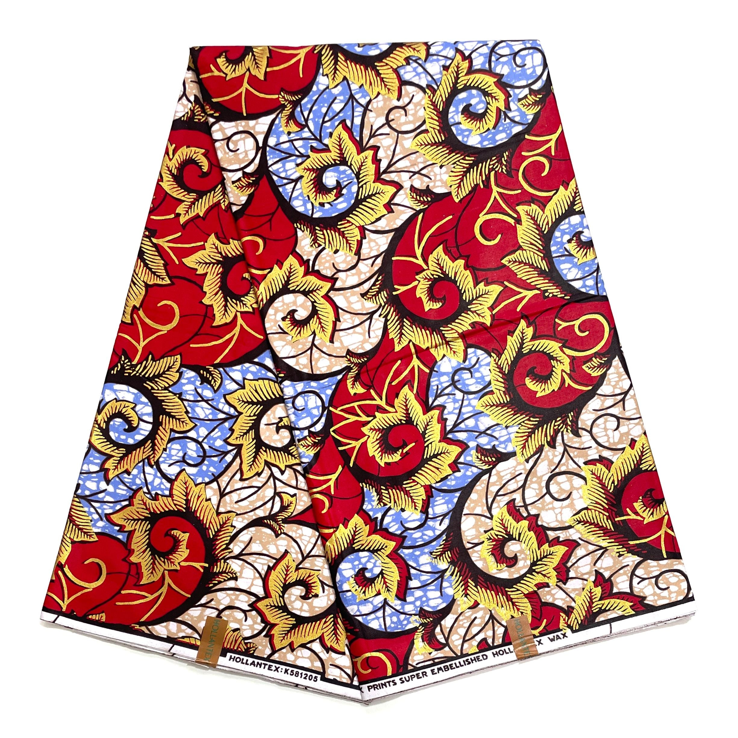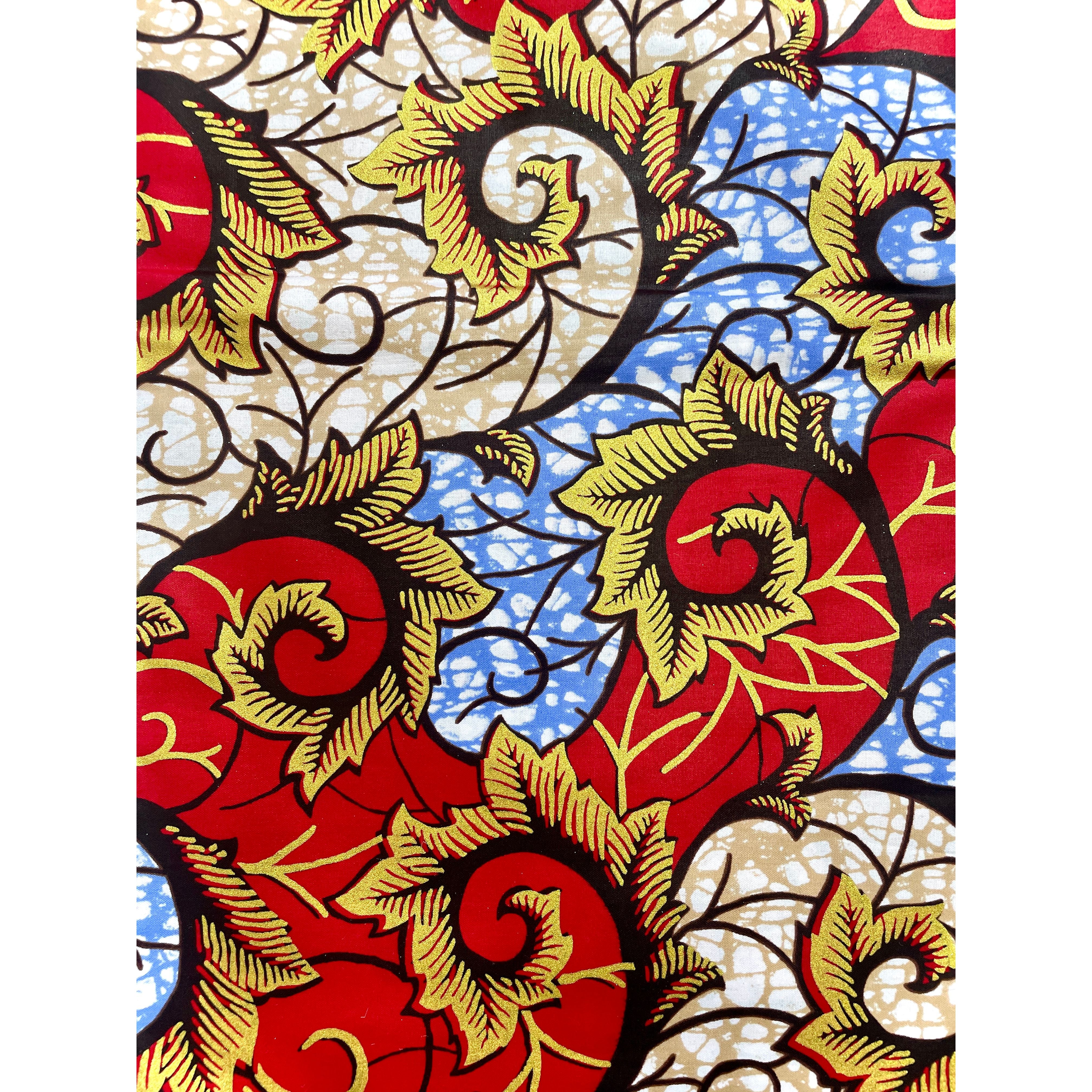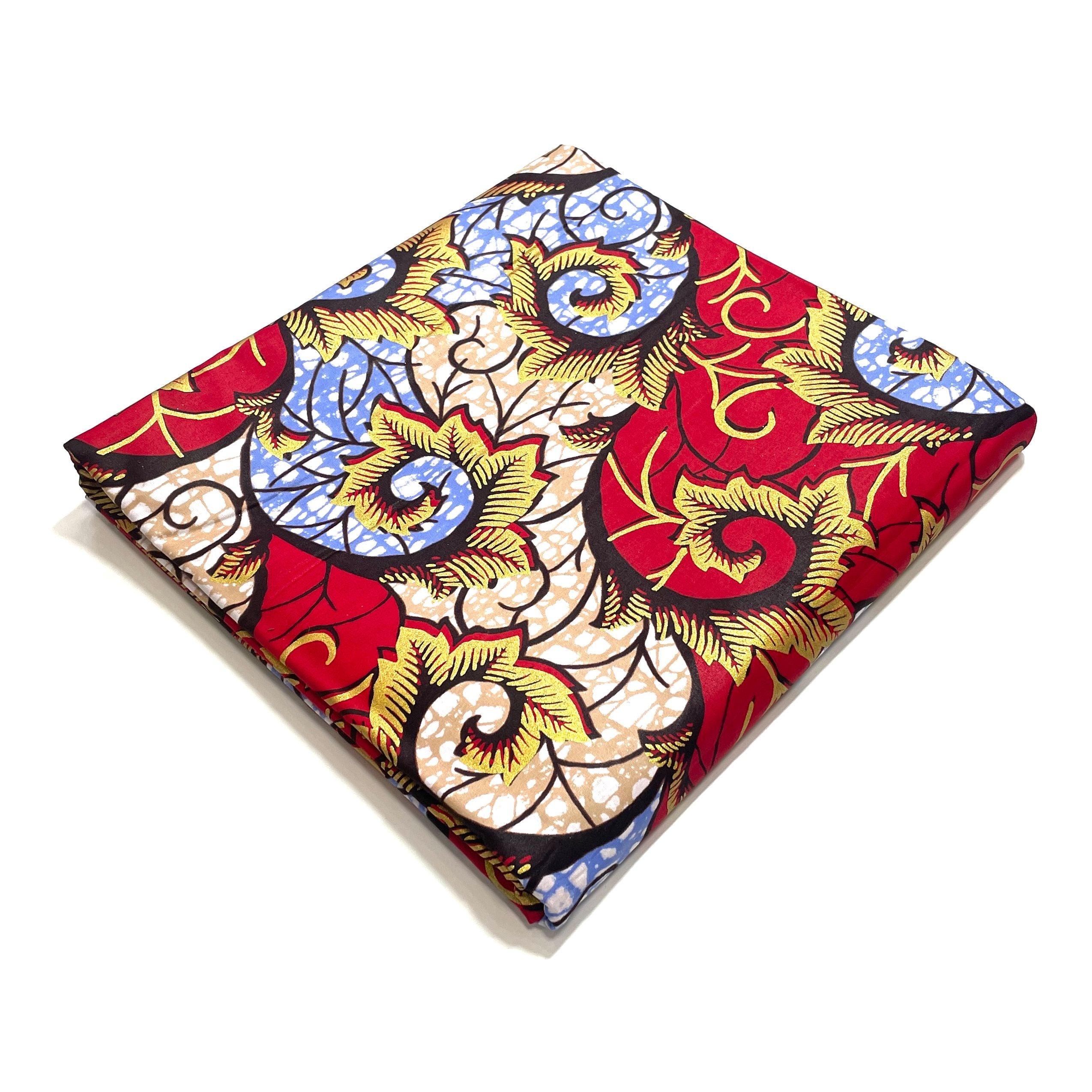 Wax Tissu Pagne Africain - Coupon 2 Yards 100% Coton - GOLDEN ROUGE