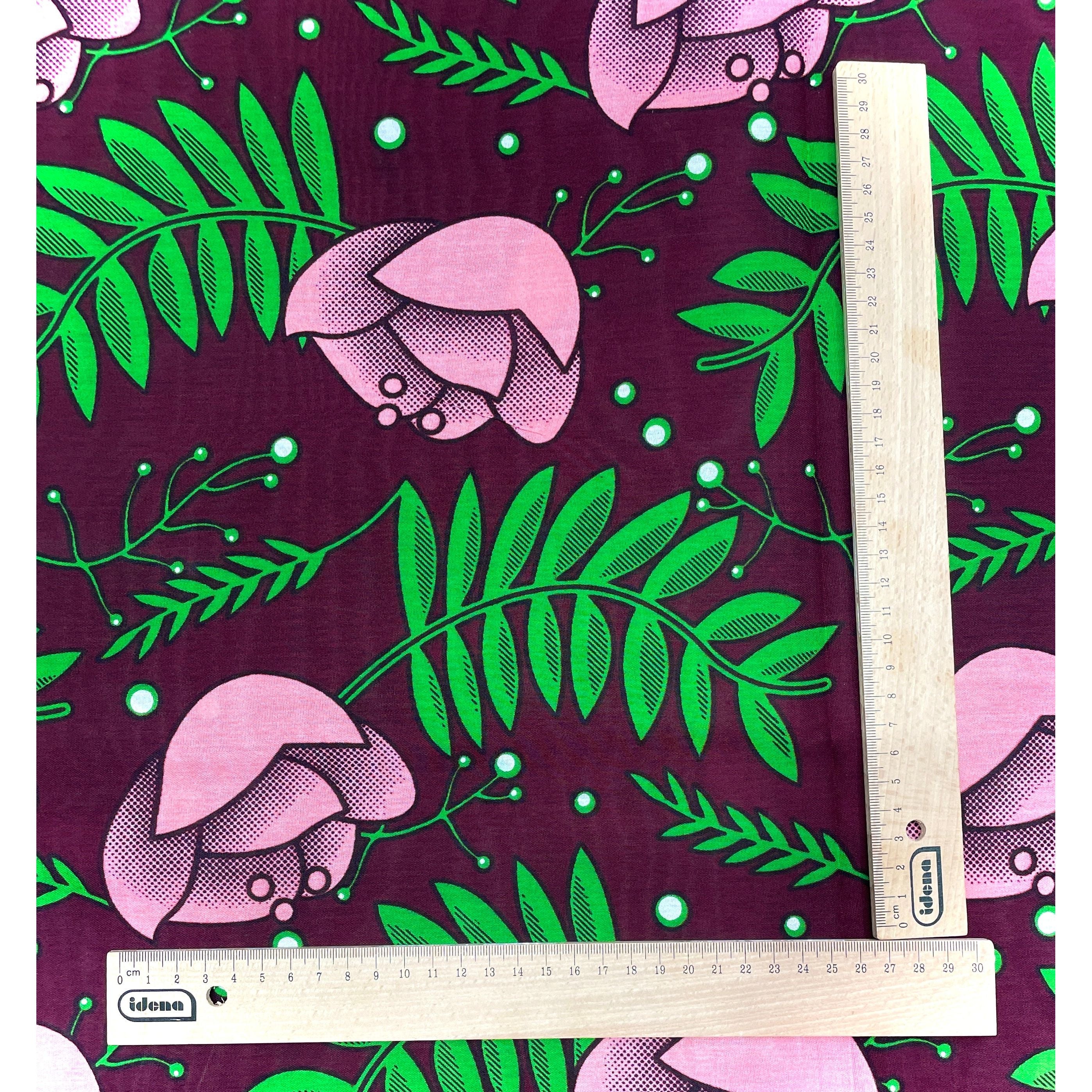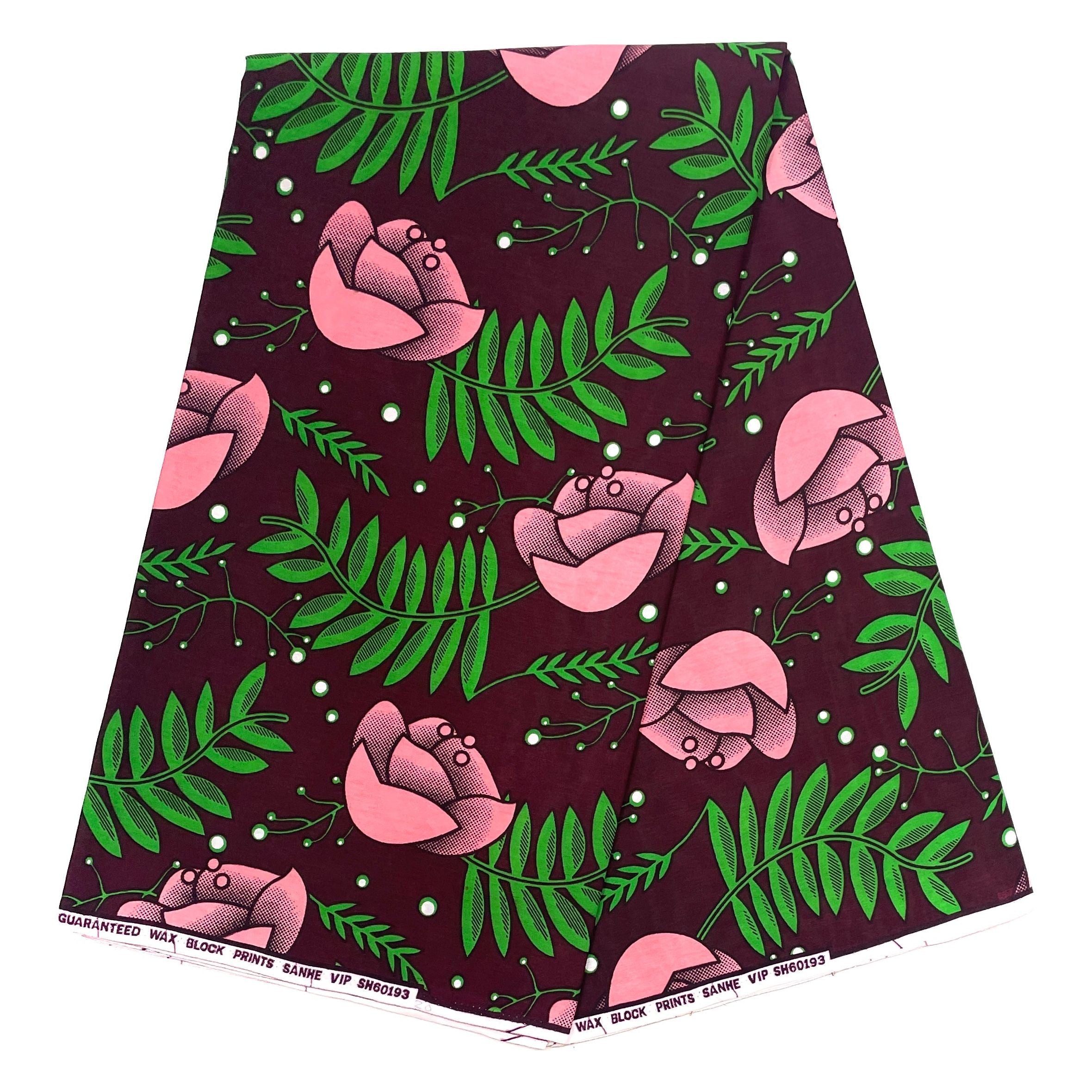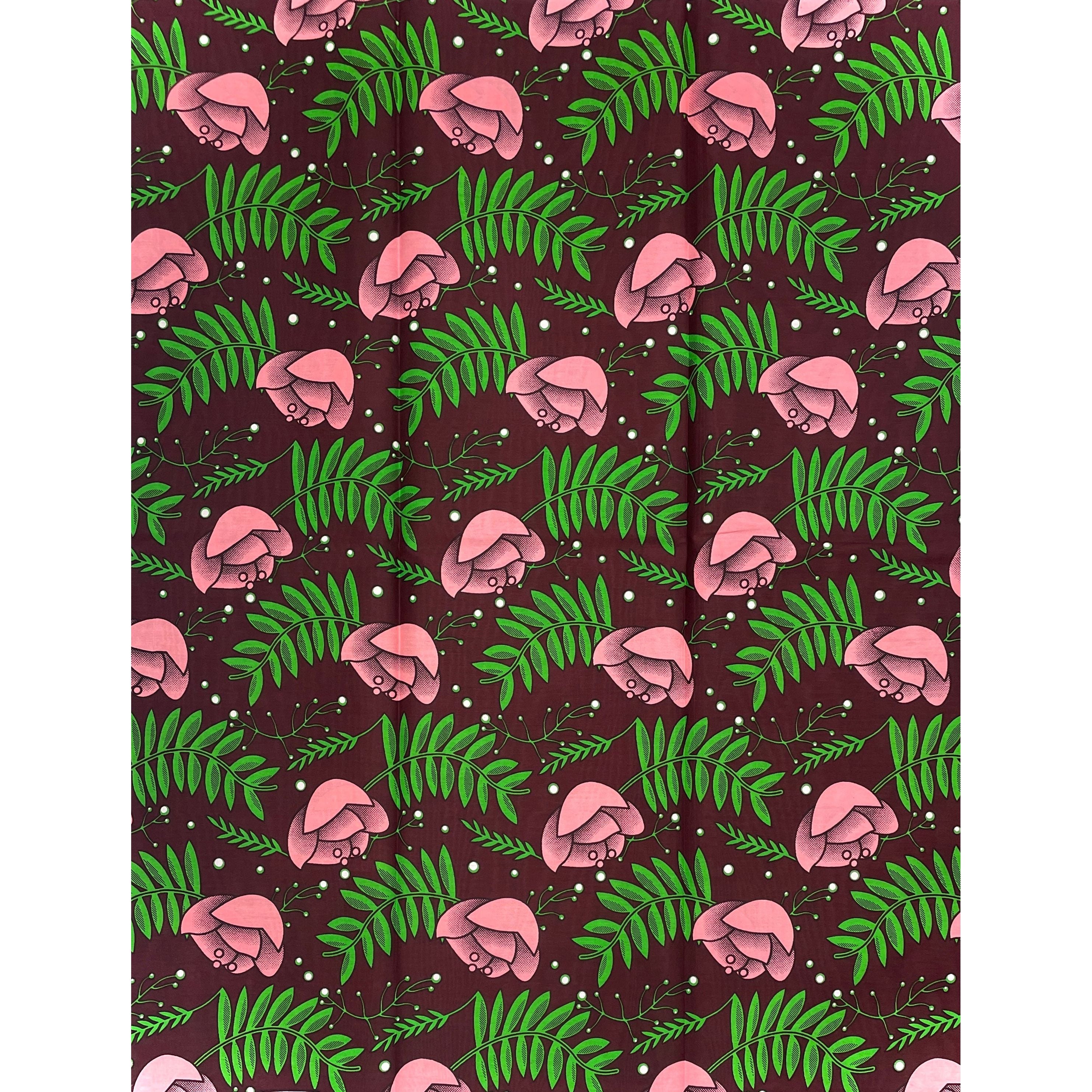 Wax Tissu Pagne Africain - Coupon 2 Yards 100% Coton - MARRON / ROSE / VERT