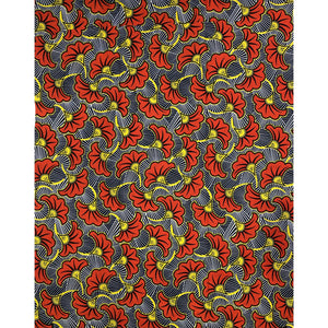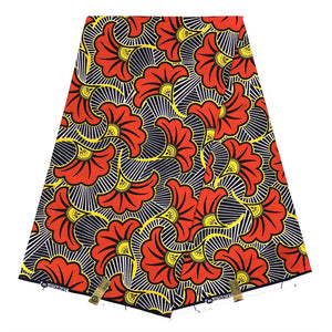 Wax Tissu Pagne Africain - Coupon 2 Yards 100% Coton - ORANGE / BLEU