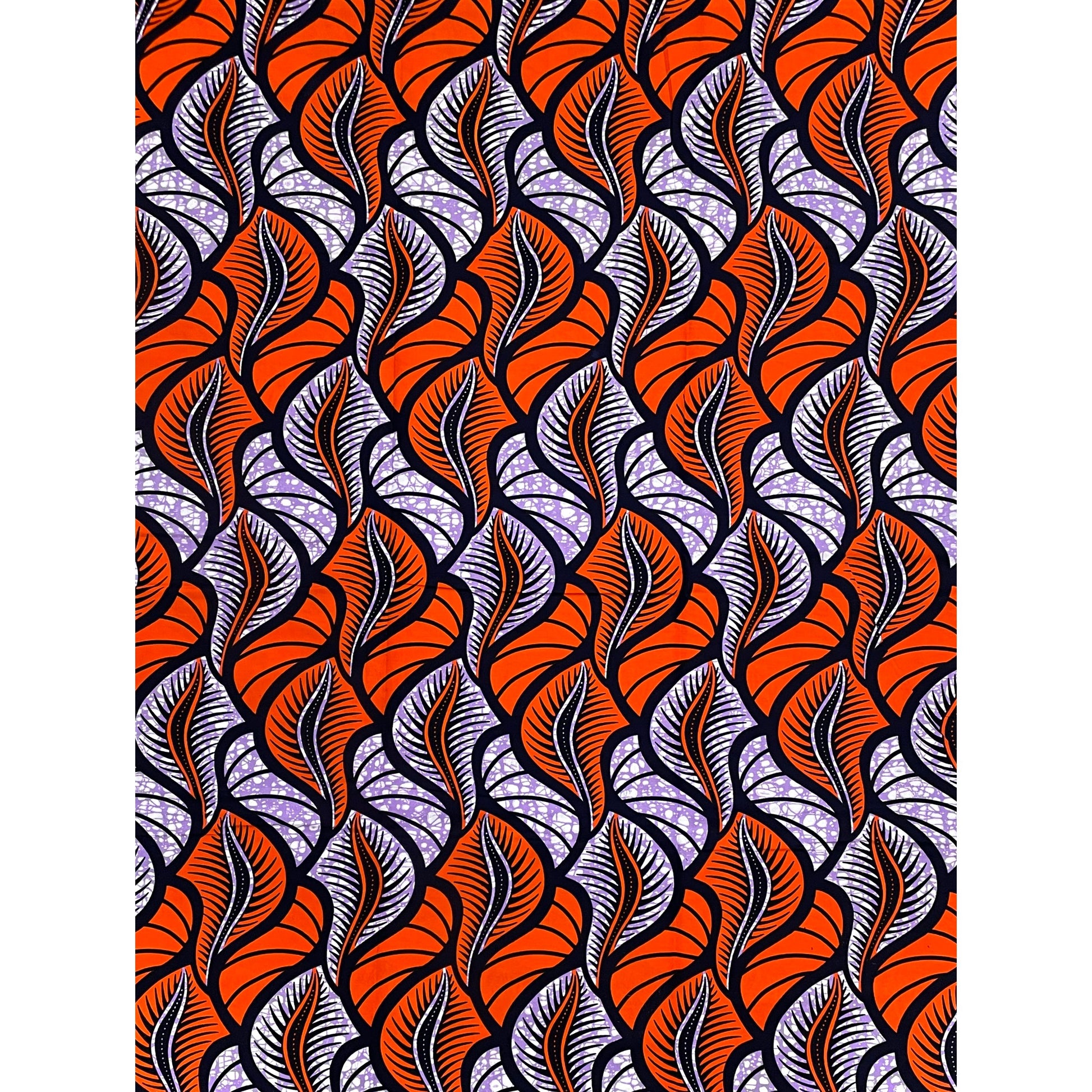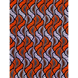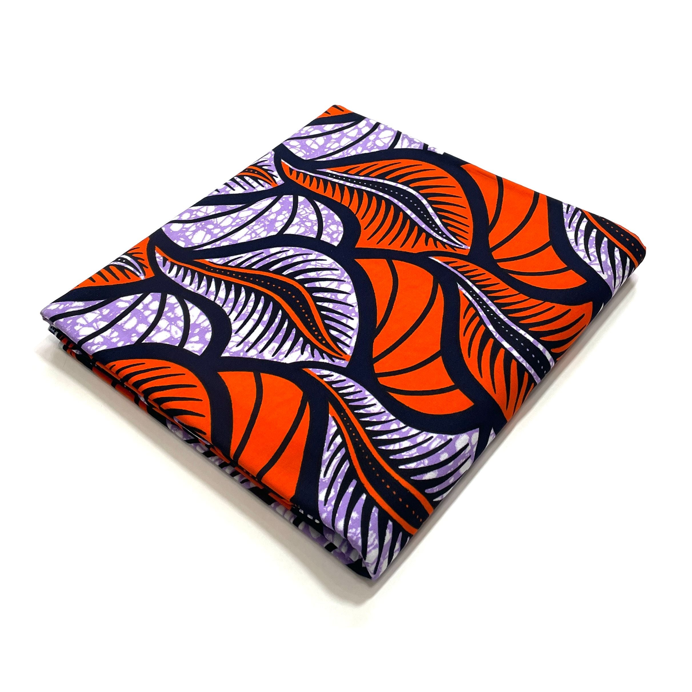 Wax Tissu Pagne Africain - Coupon 2 Yards 100% Coton - ORANGE / MAUVE